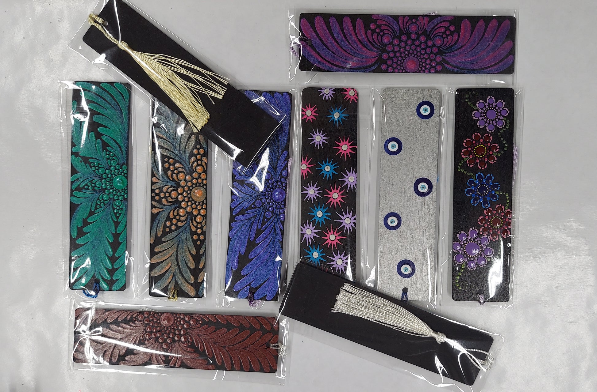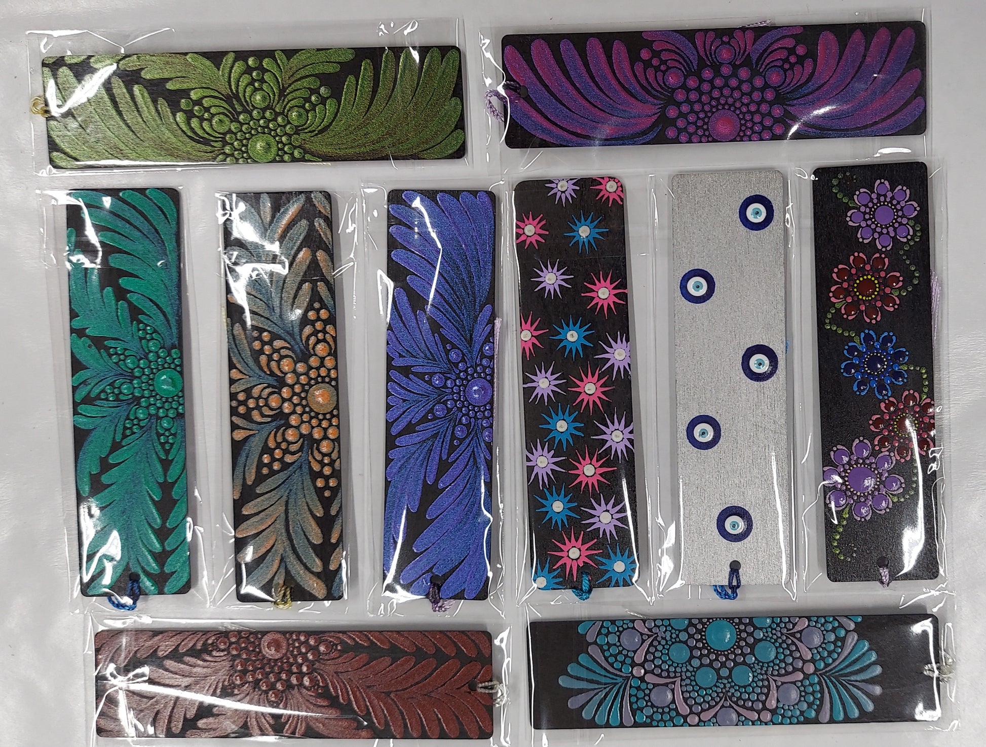 Wooden bookmark with dot painted design and tassel
