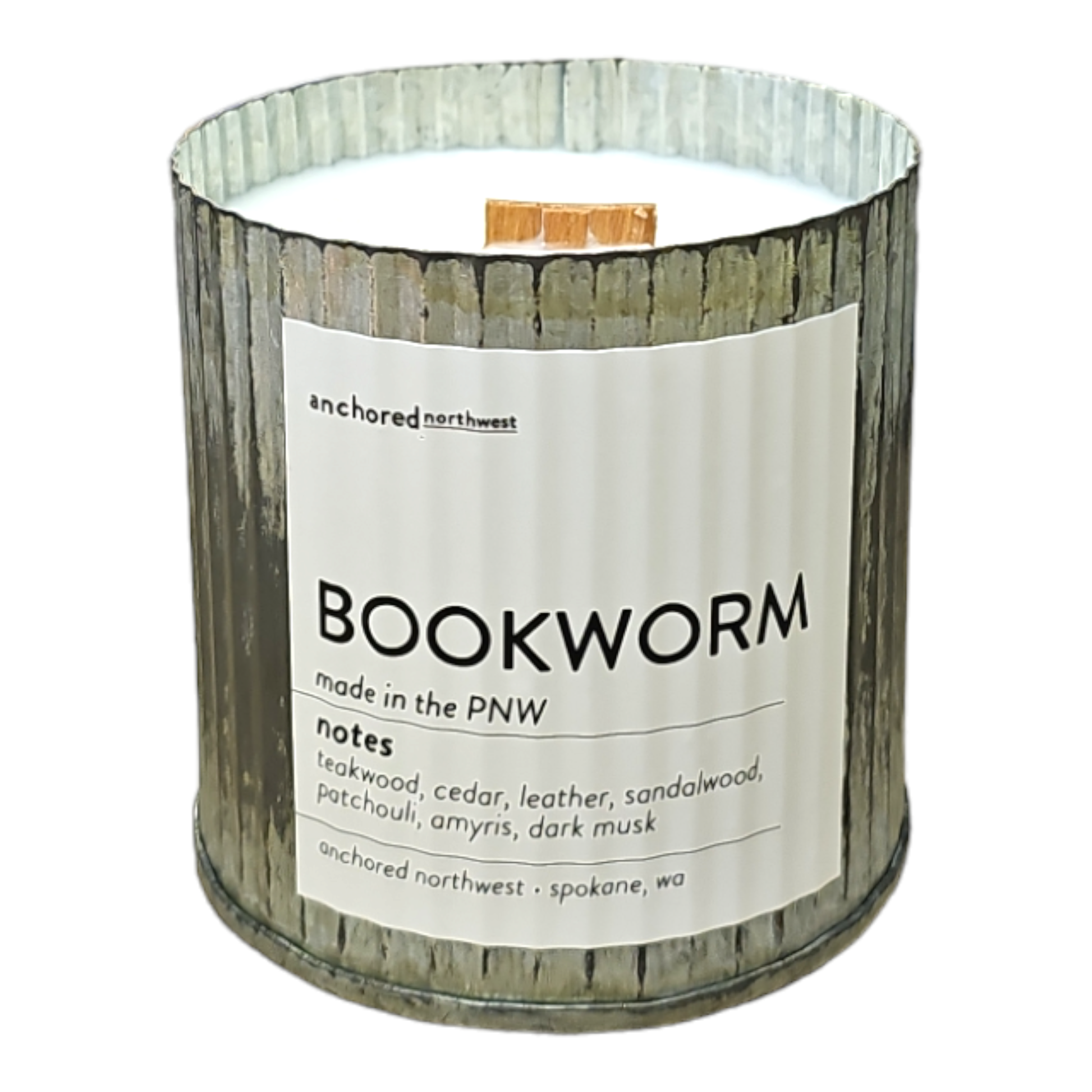Bookworm Wood Wick Rustic Farmhouse Soy Candle (60 hour burn)