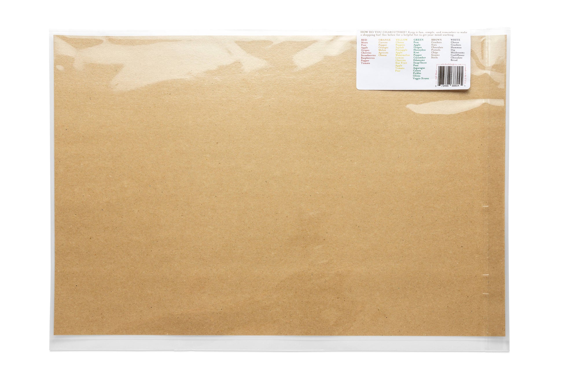- Packaged in a sealed cello sleeve with color coded shopping list on back of label