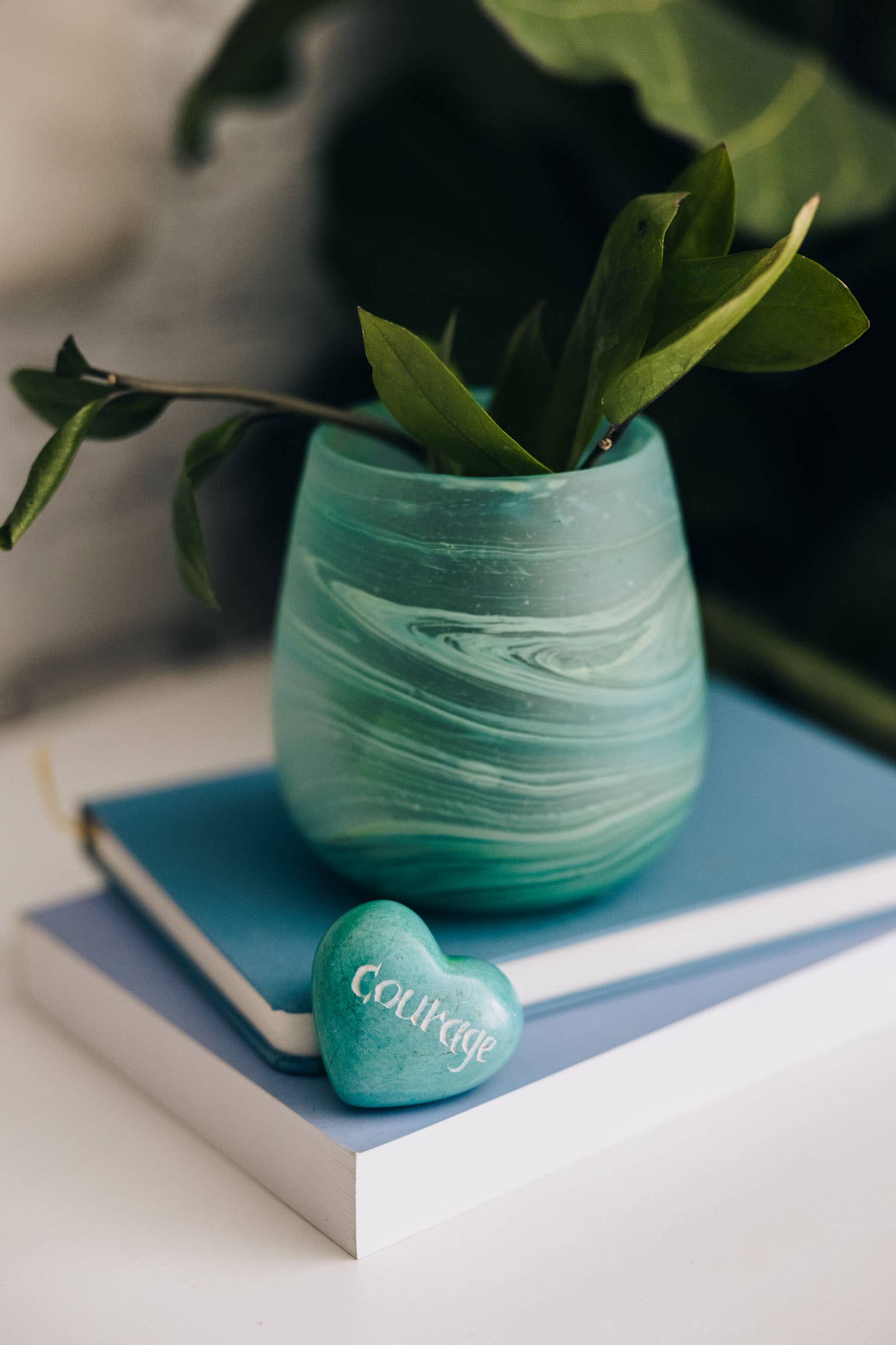 Created in the historic West Bank city of Hebron, a sacred site for Christians, Muslims and Jews, this candleholder comes with small amount of sand from the Holy Land. Hebron is also well-known for its traditional glass-blowing. Glassmakers create these distinctively beautiful Phoenician glass pieces, using recycled bottles and a family secret to create the swirls and range of colors. The Phoenician glass technique requires such special skill and care that it had historically been reserved for wedding gifts; the Natsheh family of glass-blowers have helped to revive a craft nearly forgotten during the mid-20th century. Established in 1890, Hebron Glass is a family business that has expanded over the years and is now exporting traditional glassware and ceramics products. Hand-blown glass votive candleholder, sand - Each piece is handcrafted; shades of aqua and green, swirl pattern will vary. 3.5Dx3.5H inches - Includes standard tealight and sand in a small bag (5.5Lx2W inches)