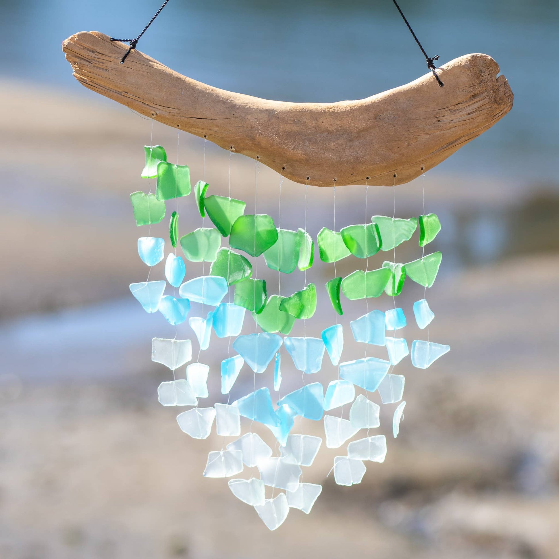Driftwood & Upcycled Glass Chime - Aqua, Turquoise, Green