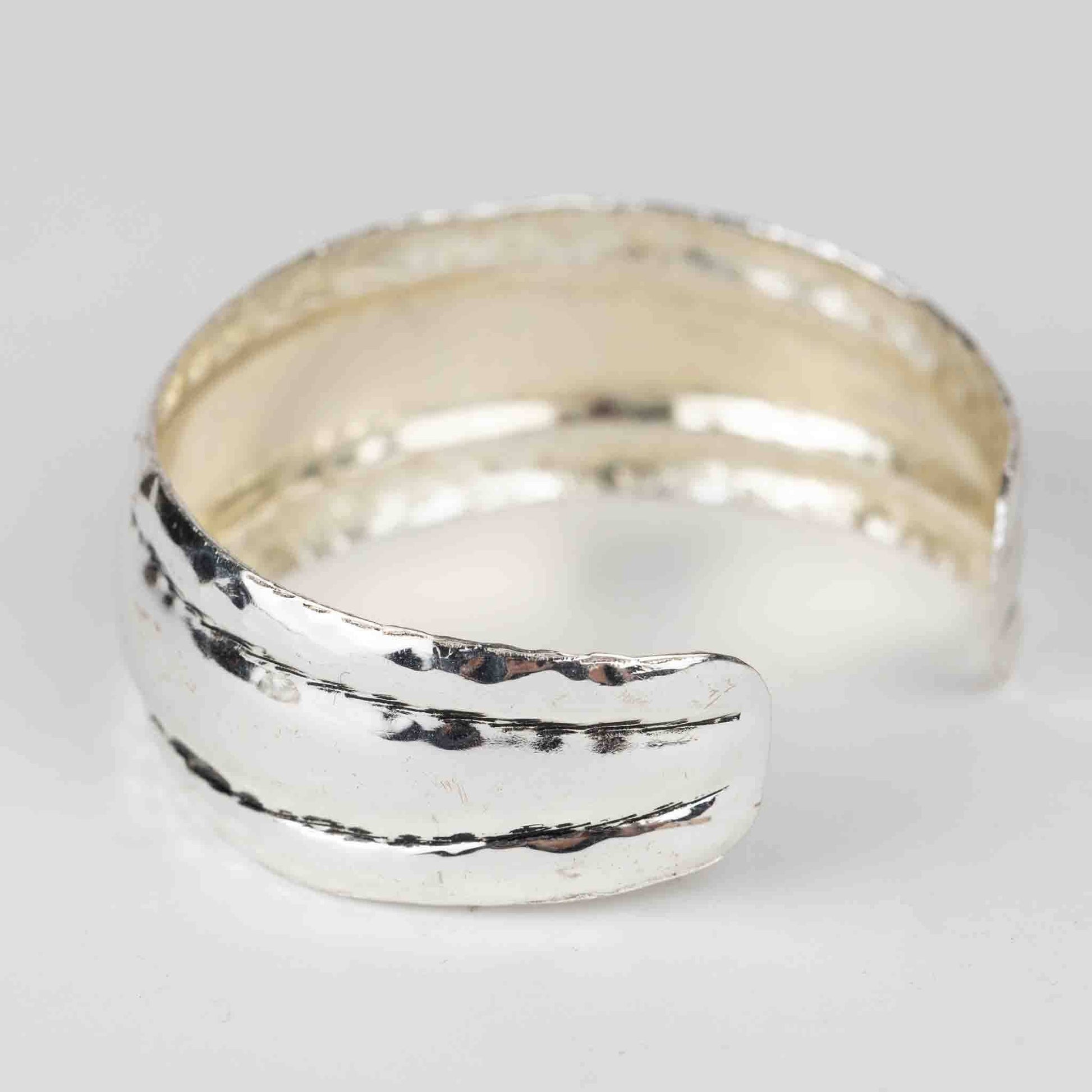 The Edgy Cuff Silver Bracelet is handcrafted brass, finished in antique silver, with a textured accent at its edge. Layer with other bangles in your collection or on its own. This bracelet brings it. Style it peeking under a long, crisp white shirt sleeve or with a flowy tank and bare arms. It's a classic that can be styled to be uniquely you.