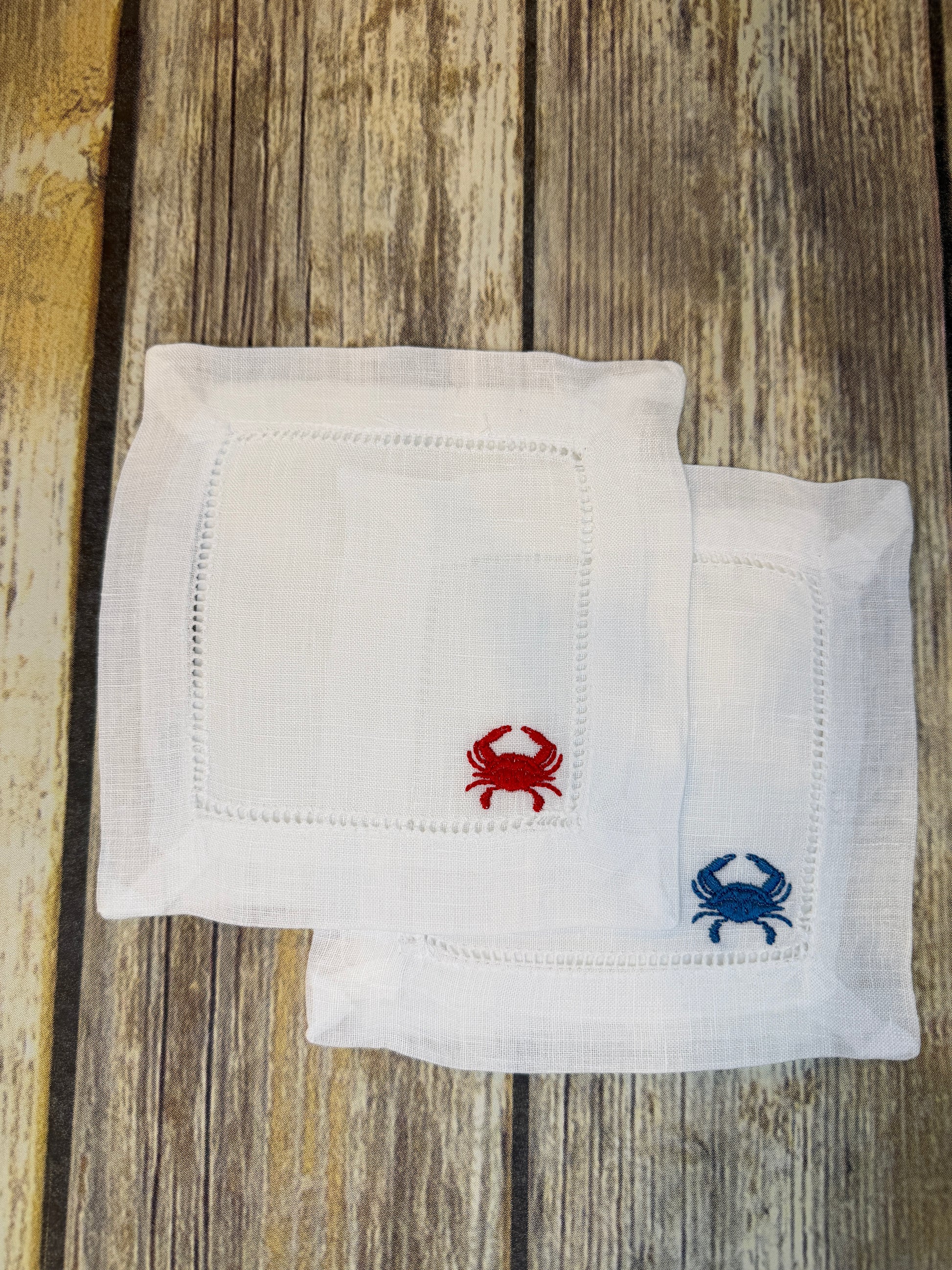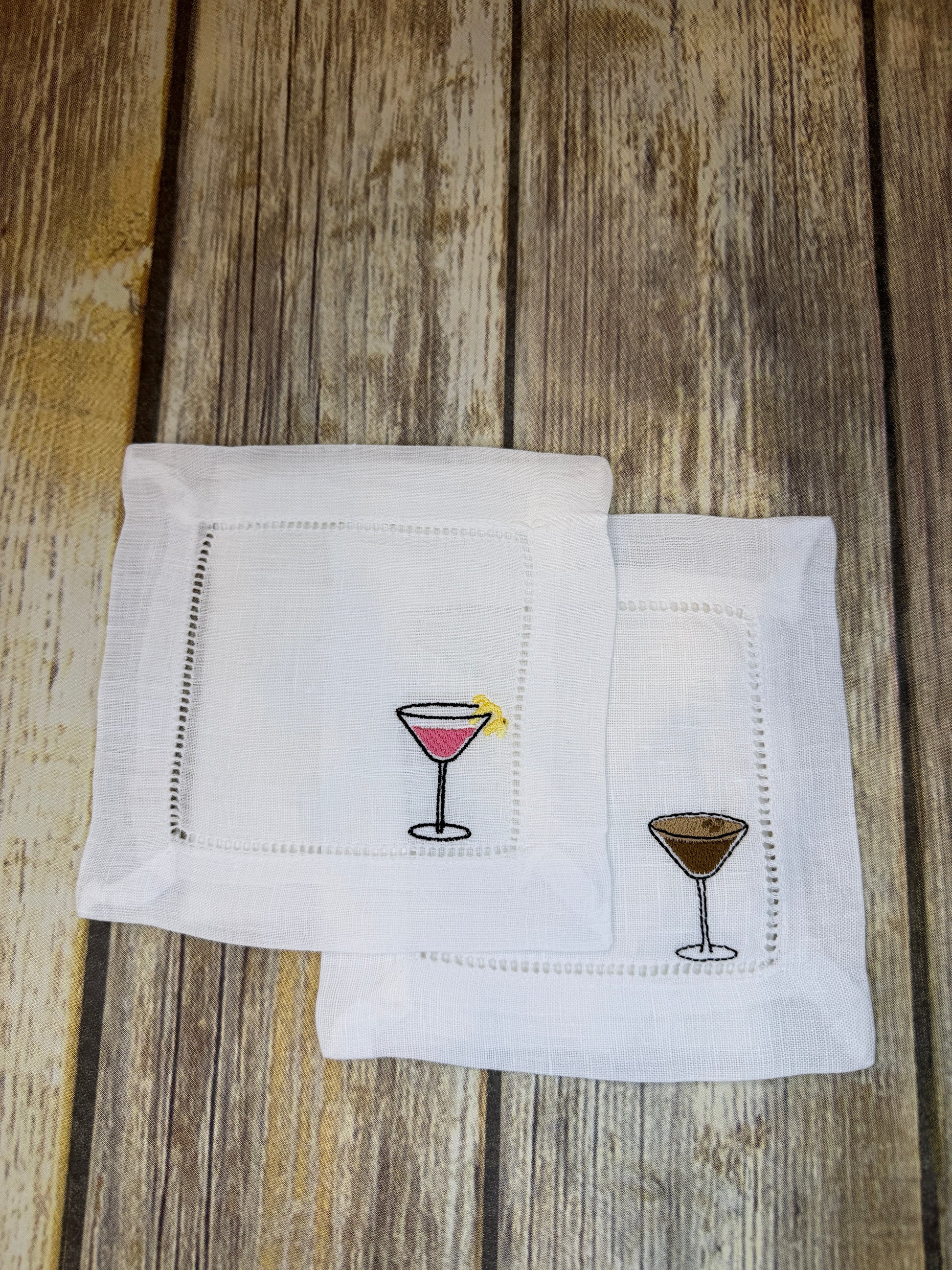 100% linen Embroidered Cocktail napkins - by Threaded Together 6x6