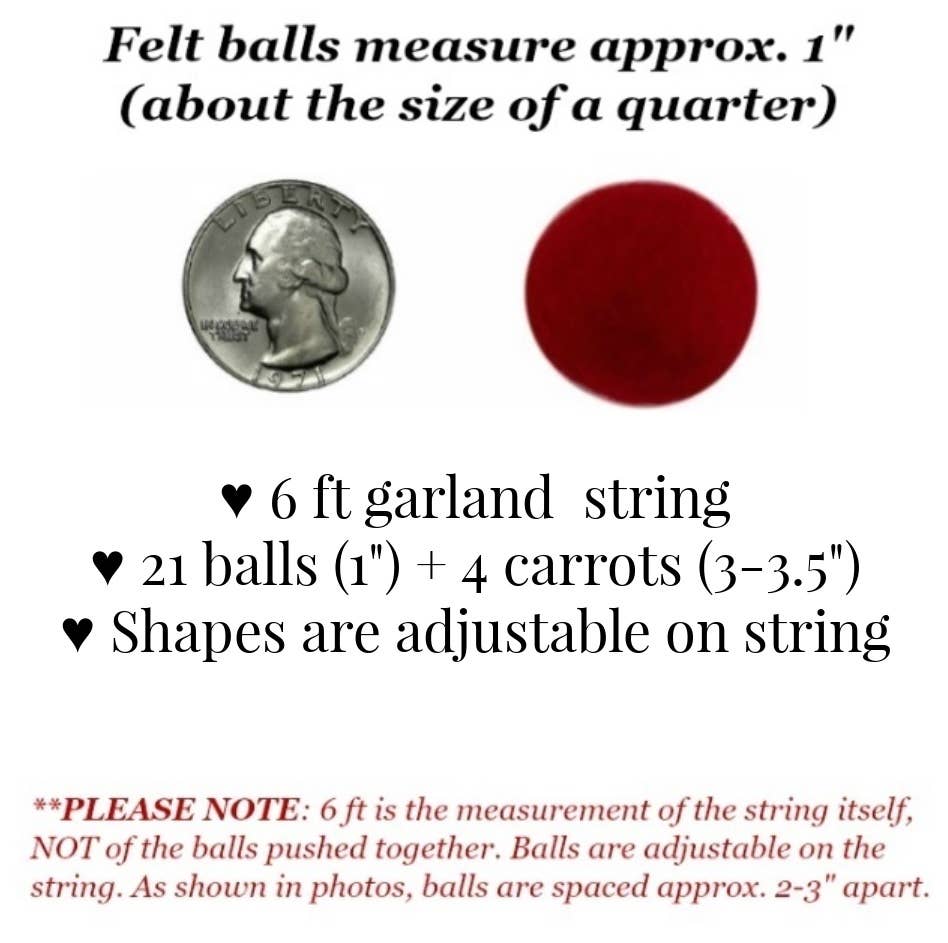♥ Felt balls measure 1". Carrots measure approx. 3-3.5" tall