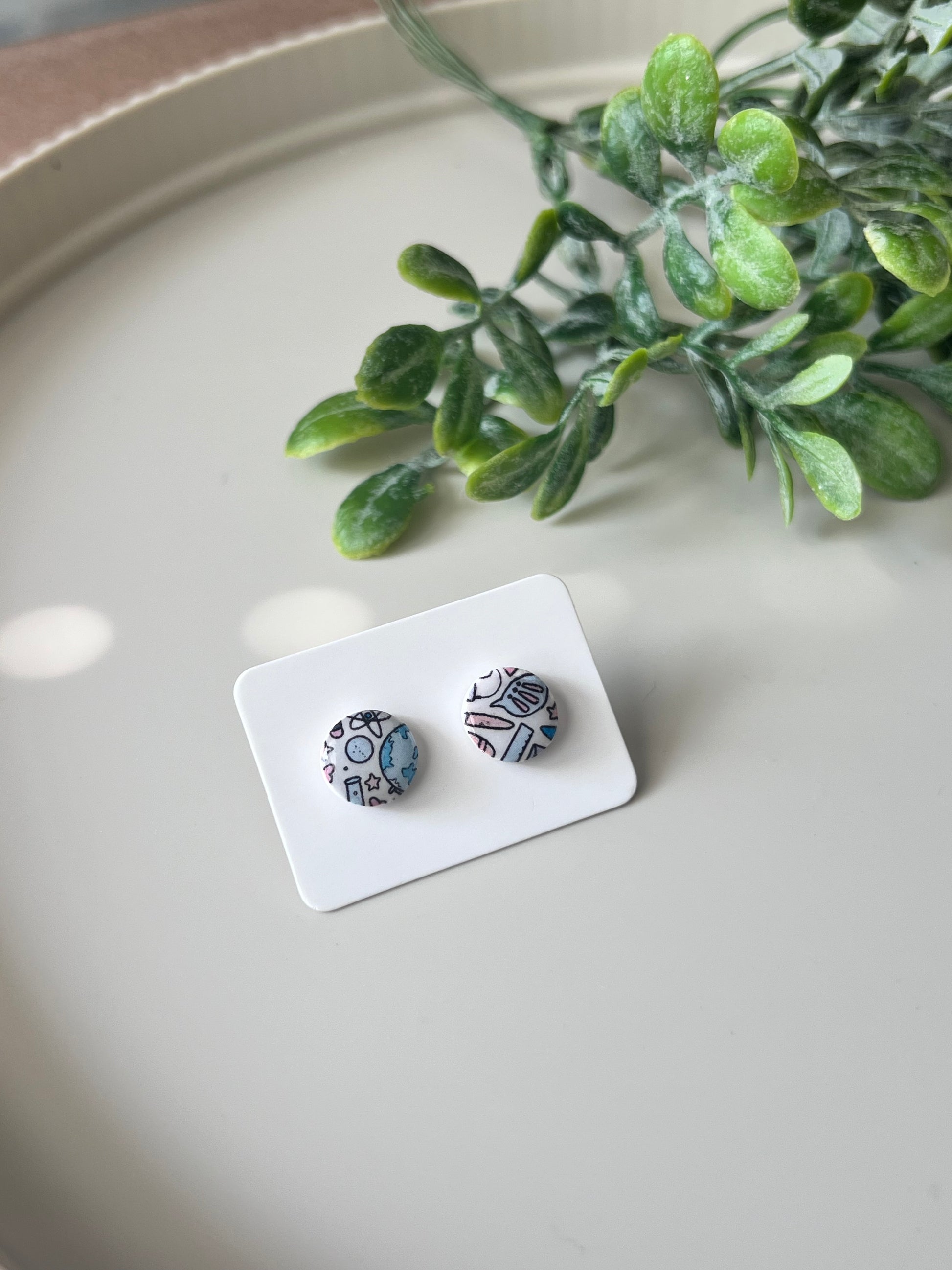 Globe & Convo Bubble, School Design, Circle Stud, Glossy