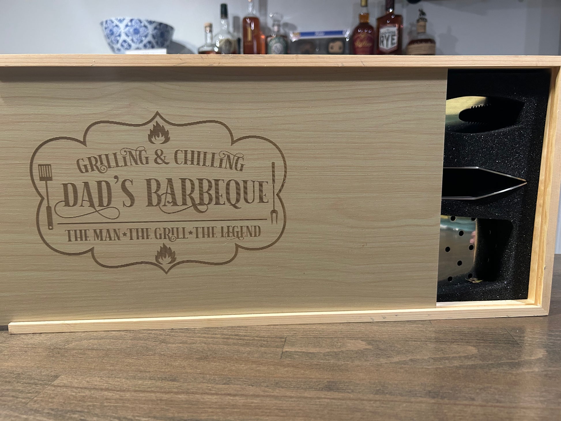 Engraved Barbeque set in wooden box