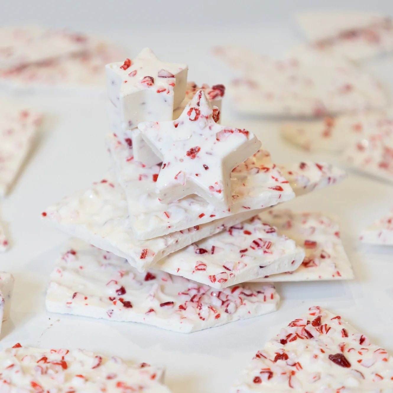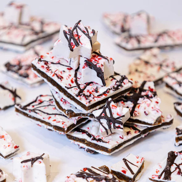 Artic Peppermint Ice Bark - Thin shards of white chocolate are generously loaded with crushed peppermint and a sprinkle of shimmery dust for holiday magic. - seasonal