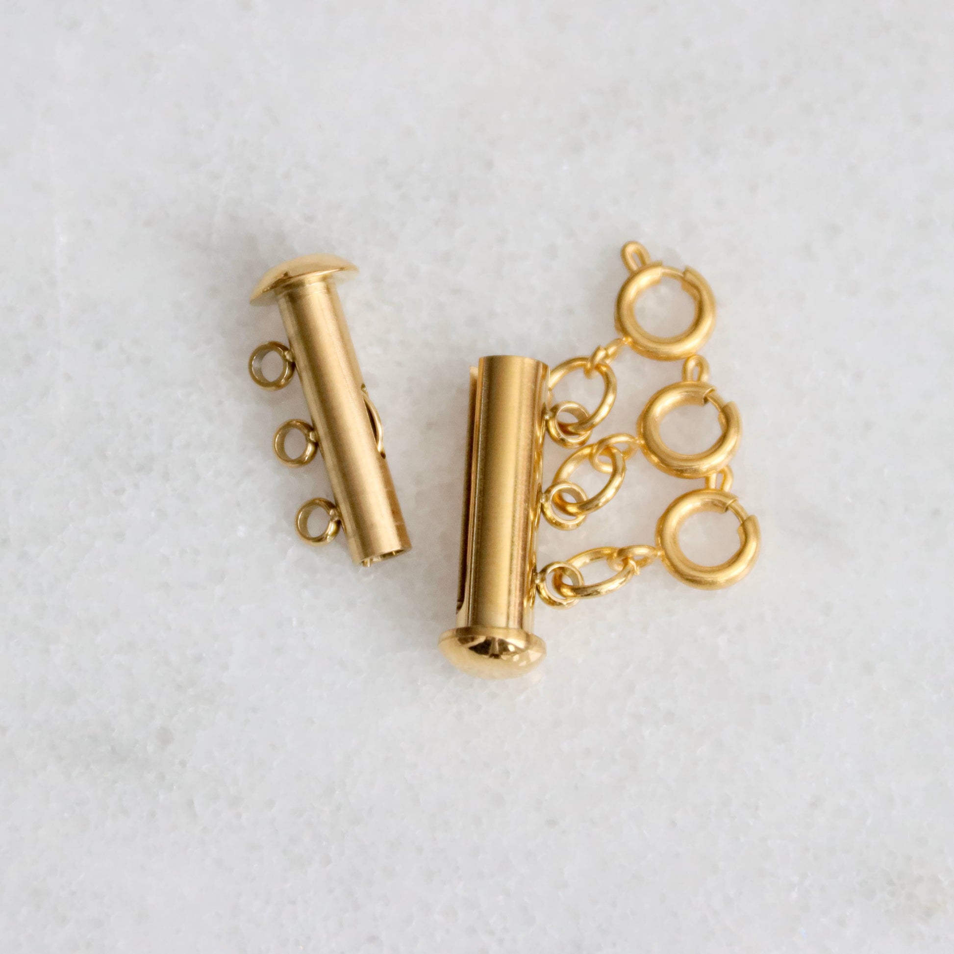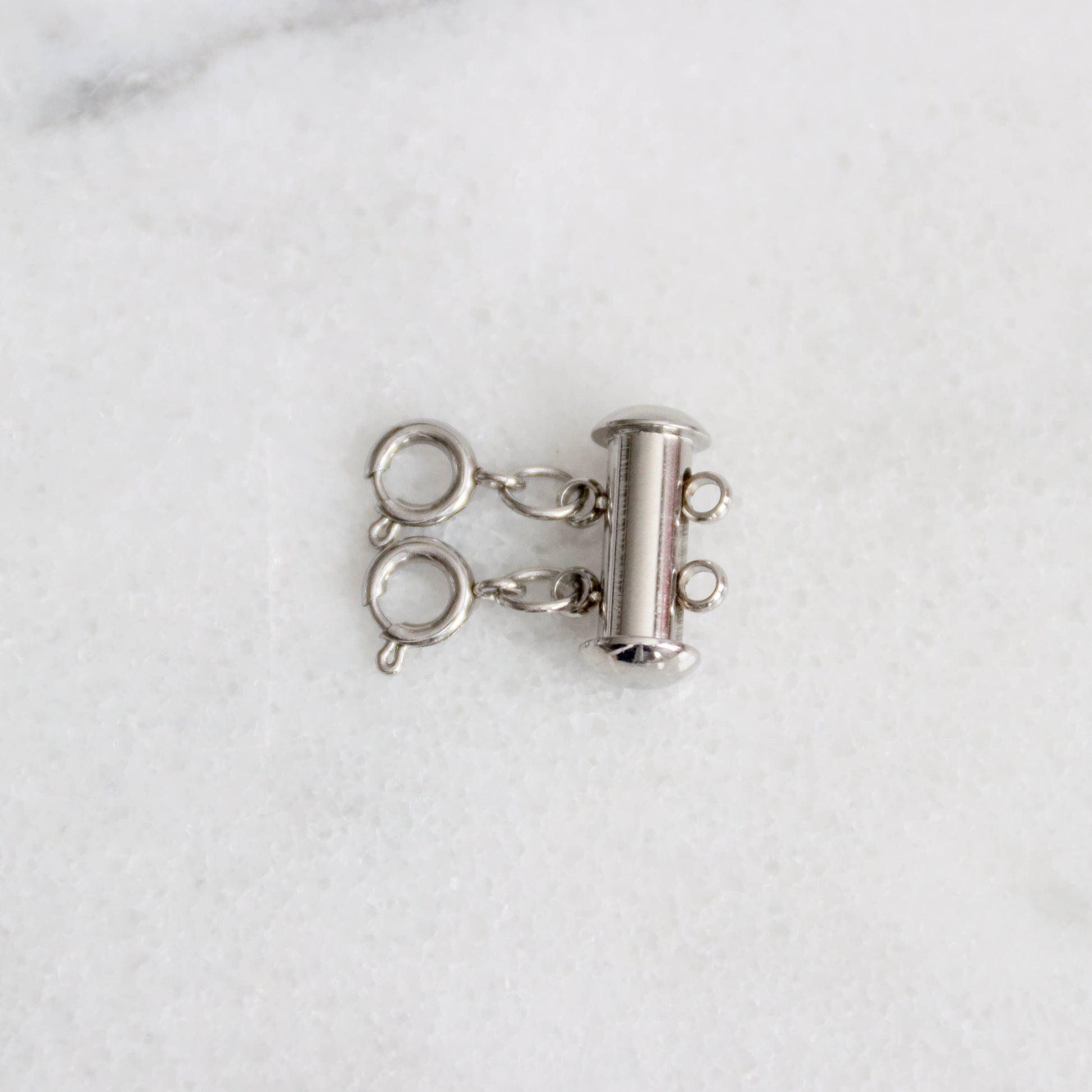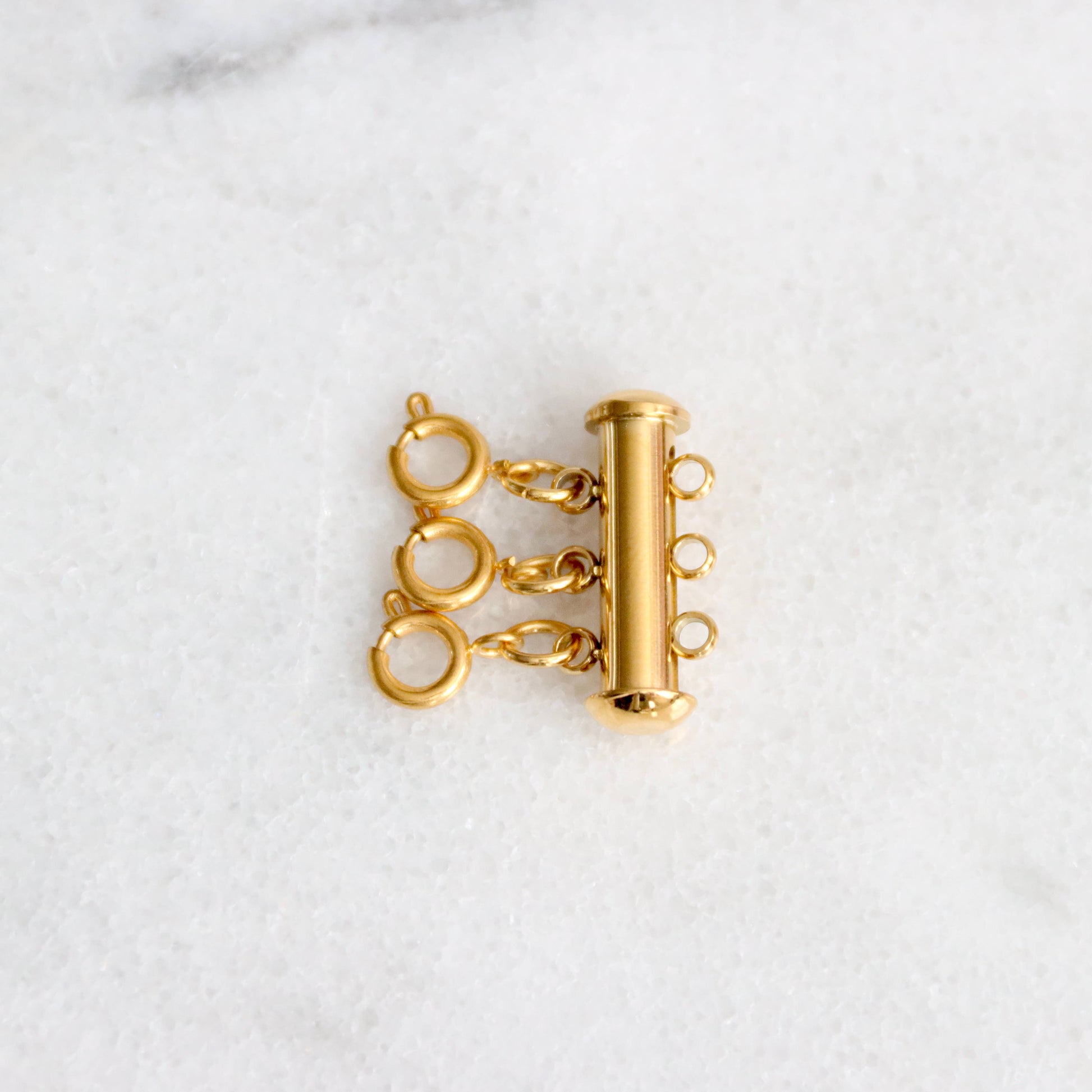 Multi strand magnetic clasp for two or three necklaces or bracelets.