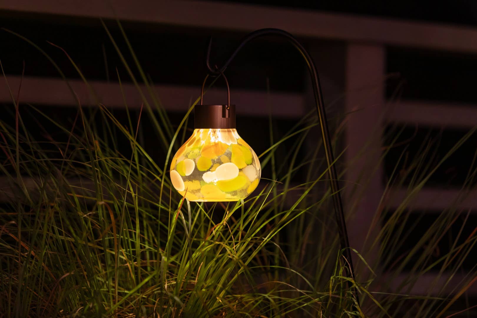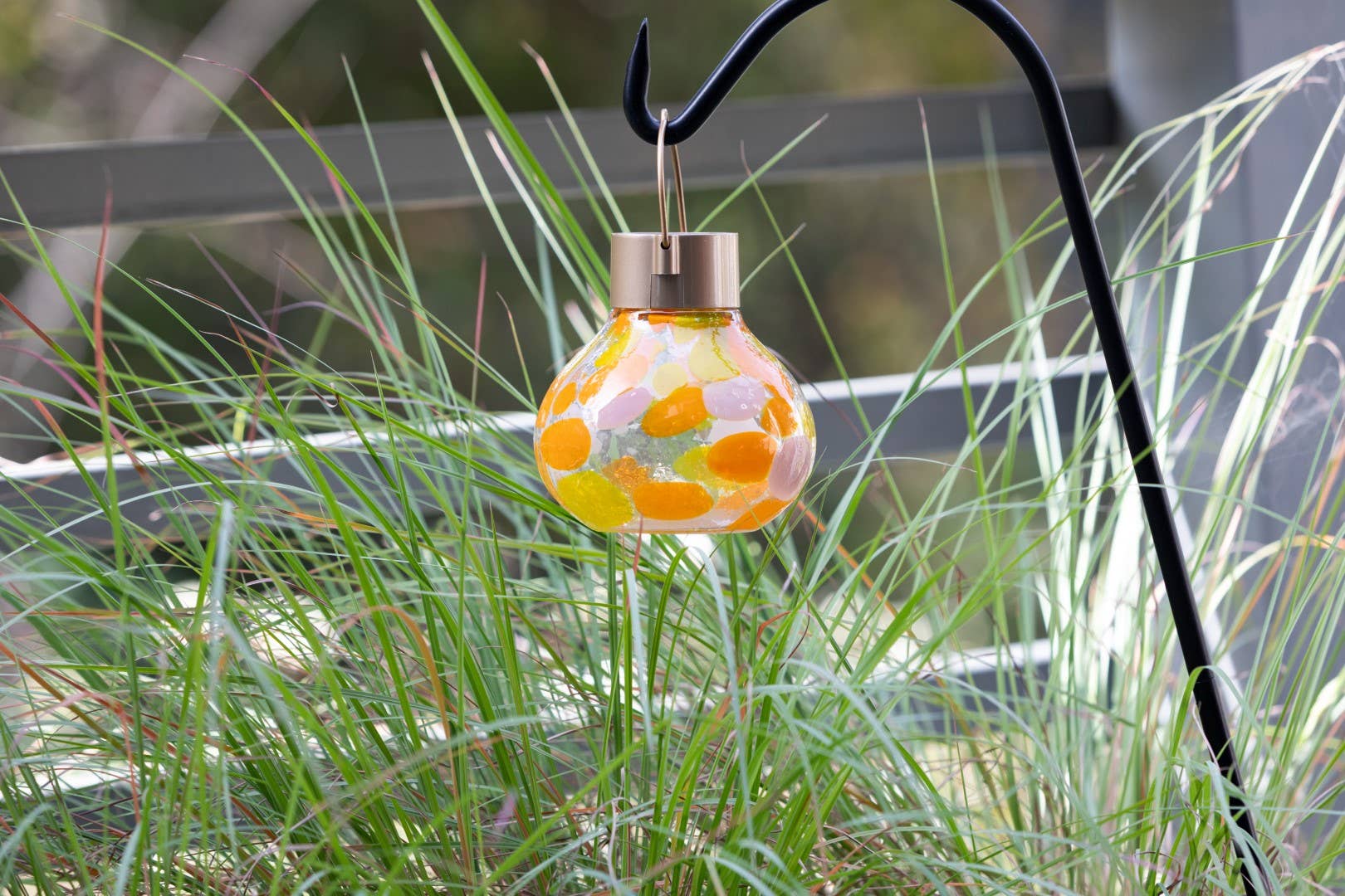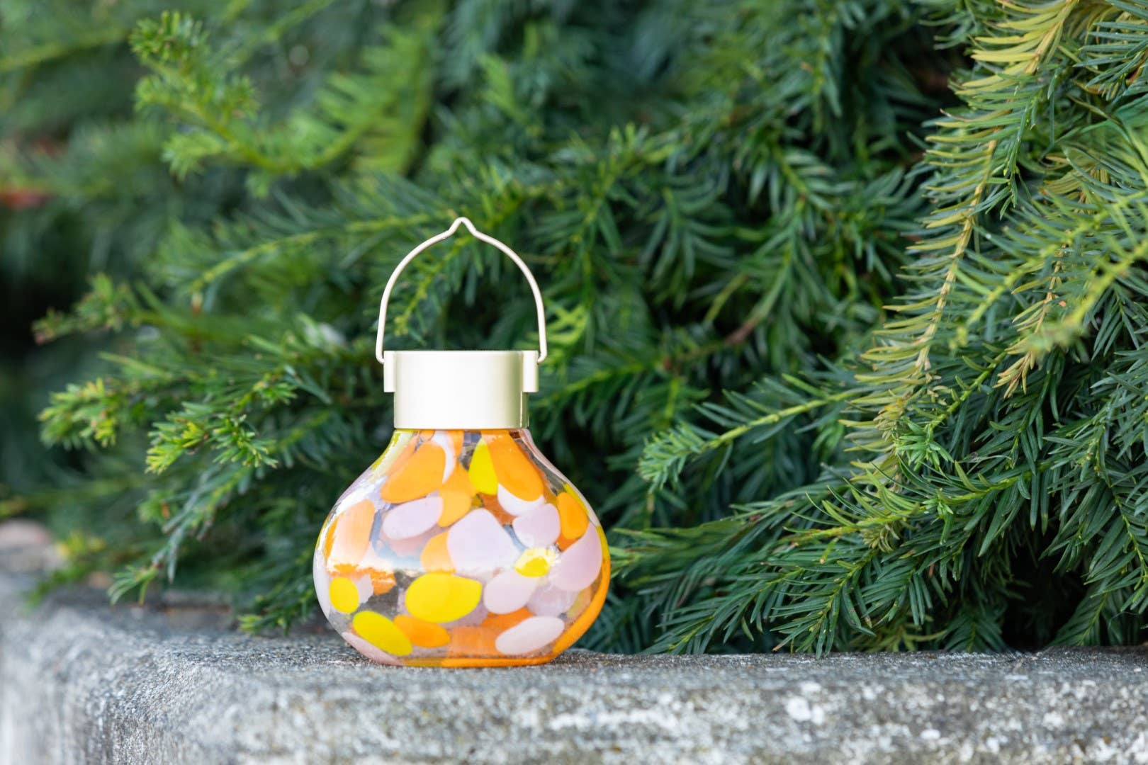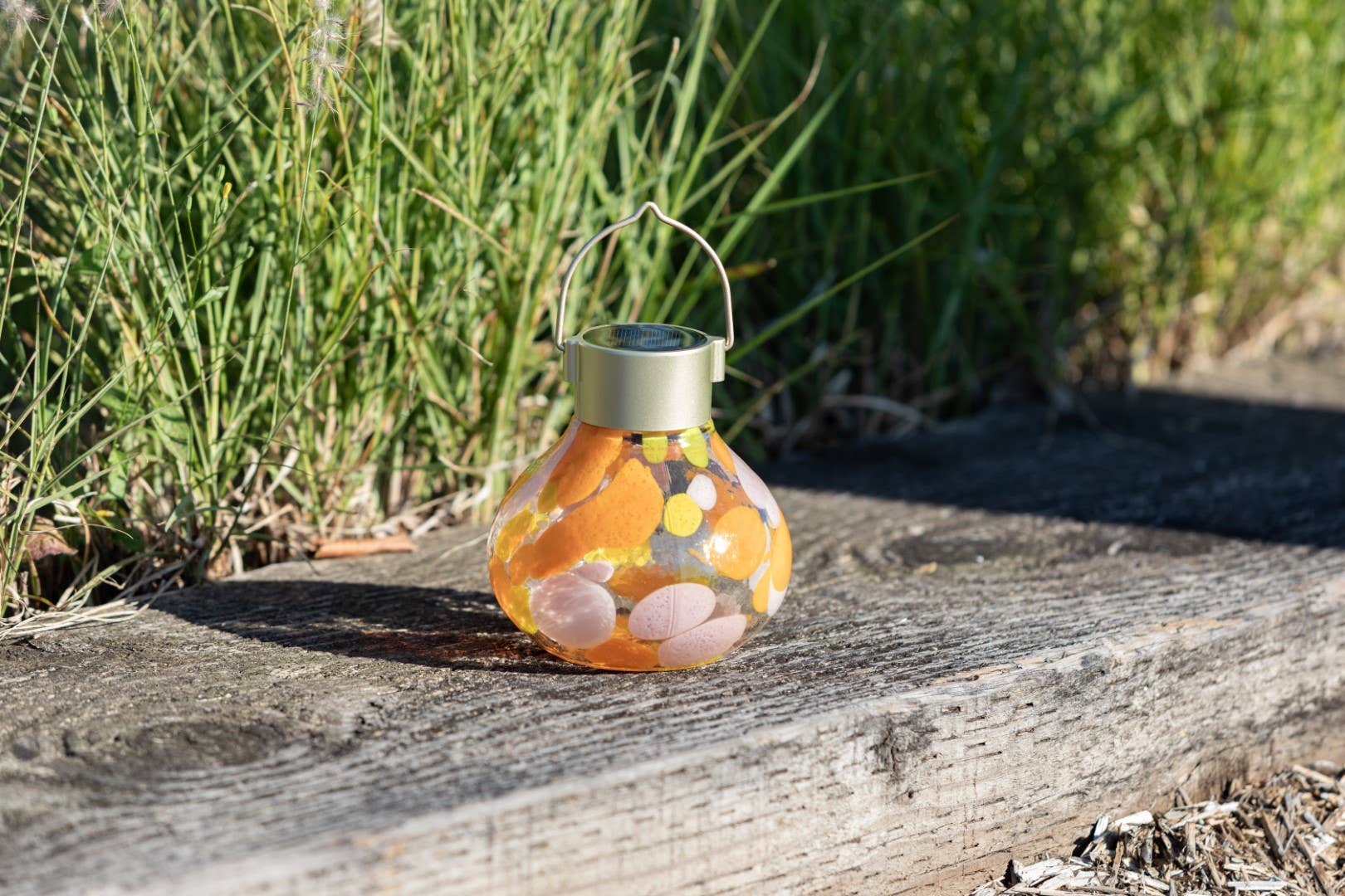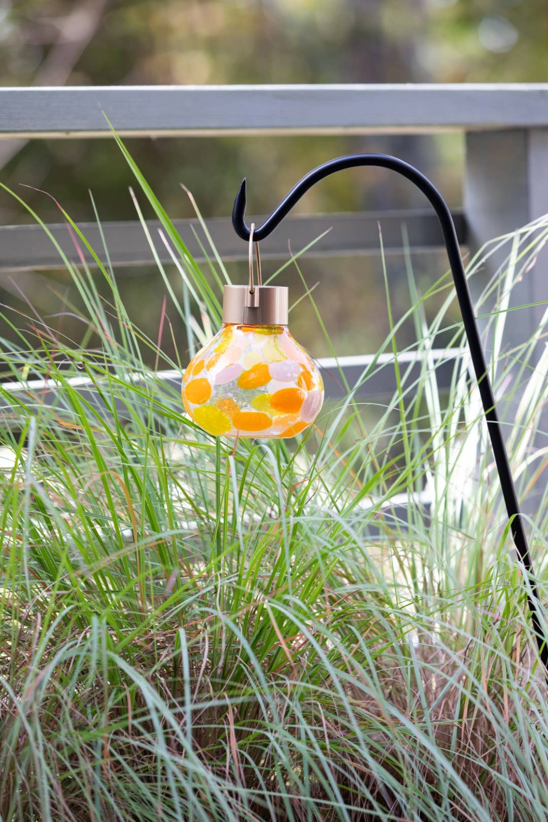 Catching the sun’s rays, our Solar Tea Lanterns light up by night to cast a warm romantic glow from within. Clean and quaint, each hand-blown glass lantern is a unique work of art. With large dotted glass patterning in bold yellows, pinks and whites you will feel the glow of the tropics when it lights itself up by night.