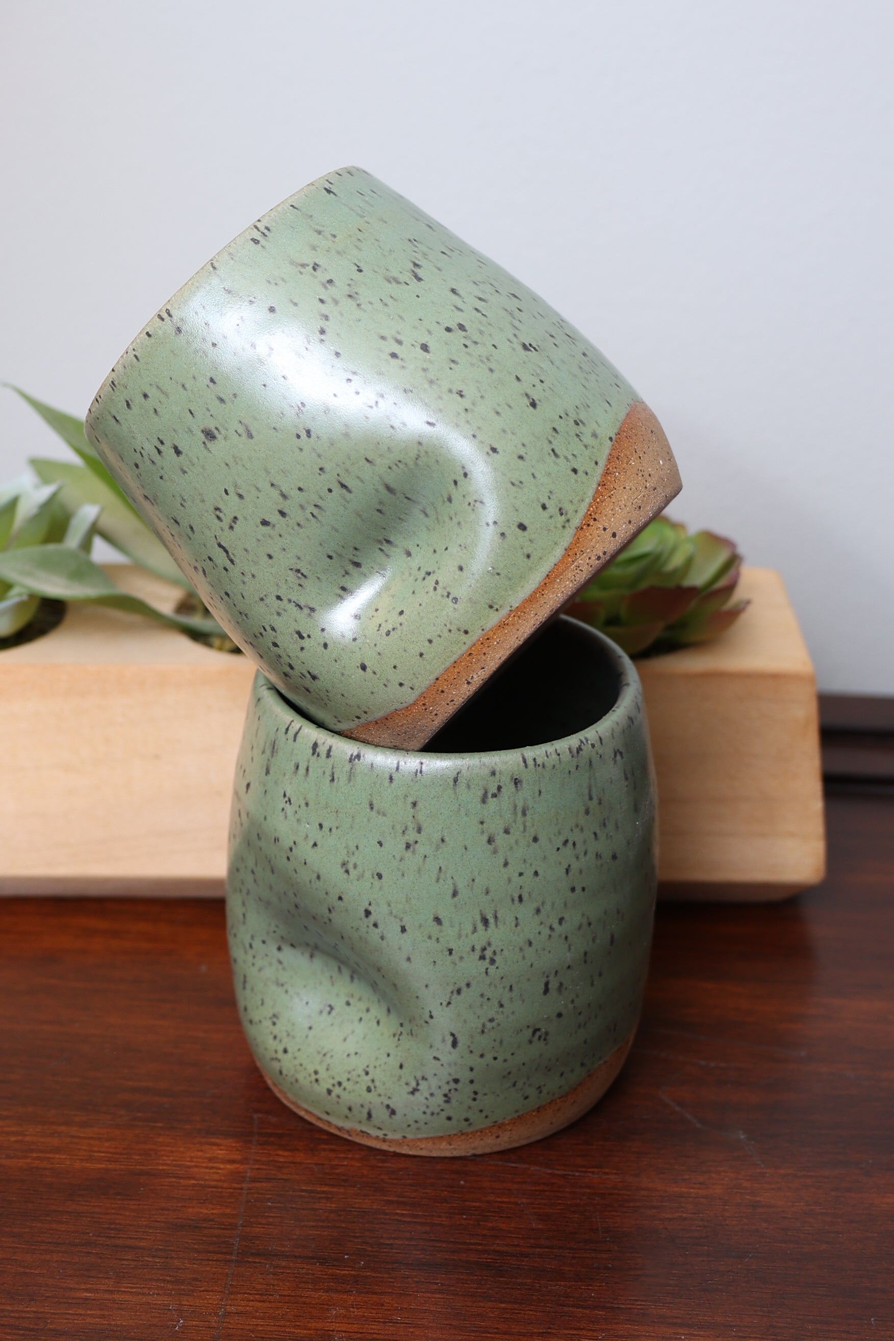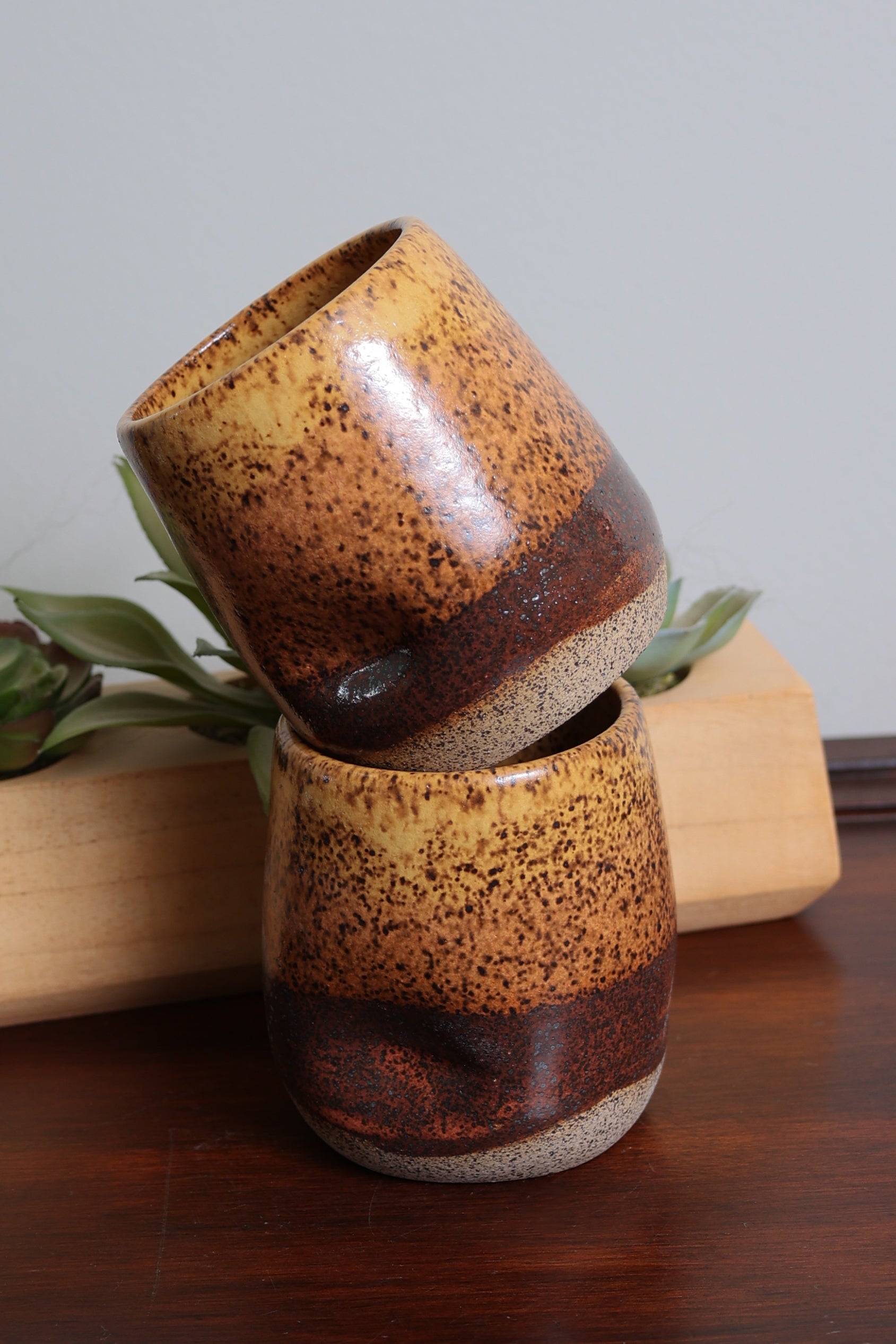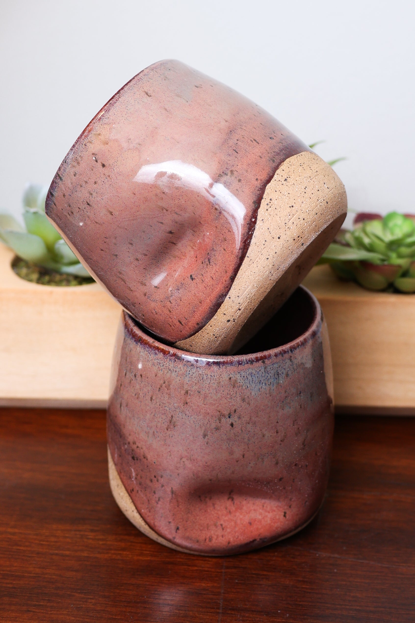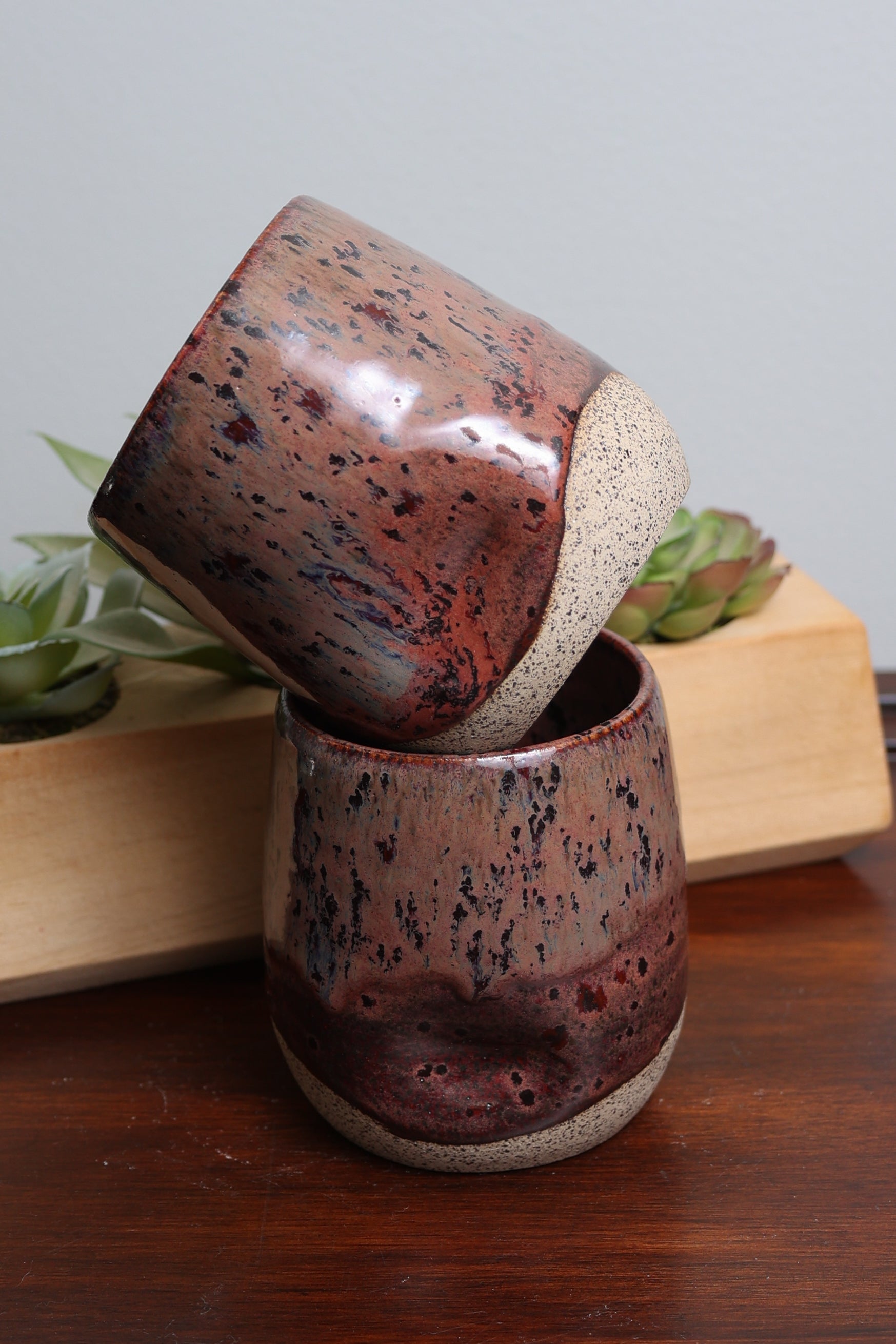 Experience the beauty of our Sawdust and Clay Thumbprint Tumblers. Hand thrown and unique, these stoneware pottery tumblers are perfect for keeping your hot beverages hot and cold beverages cold. With a thumbprint design, these tumblers add a touch of elegance to your drinking experience.