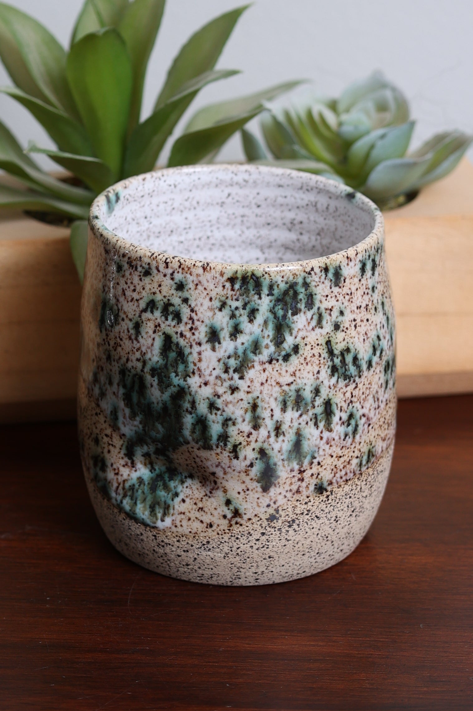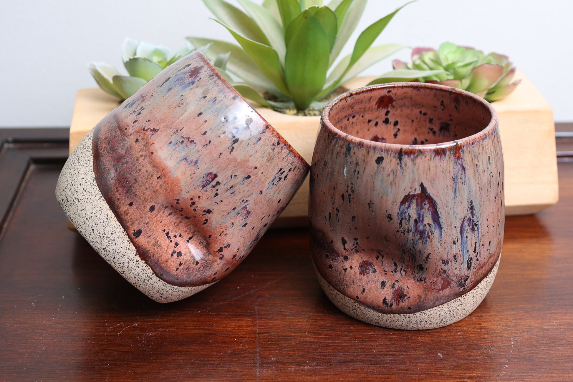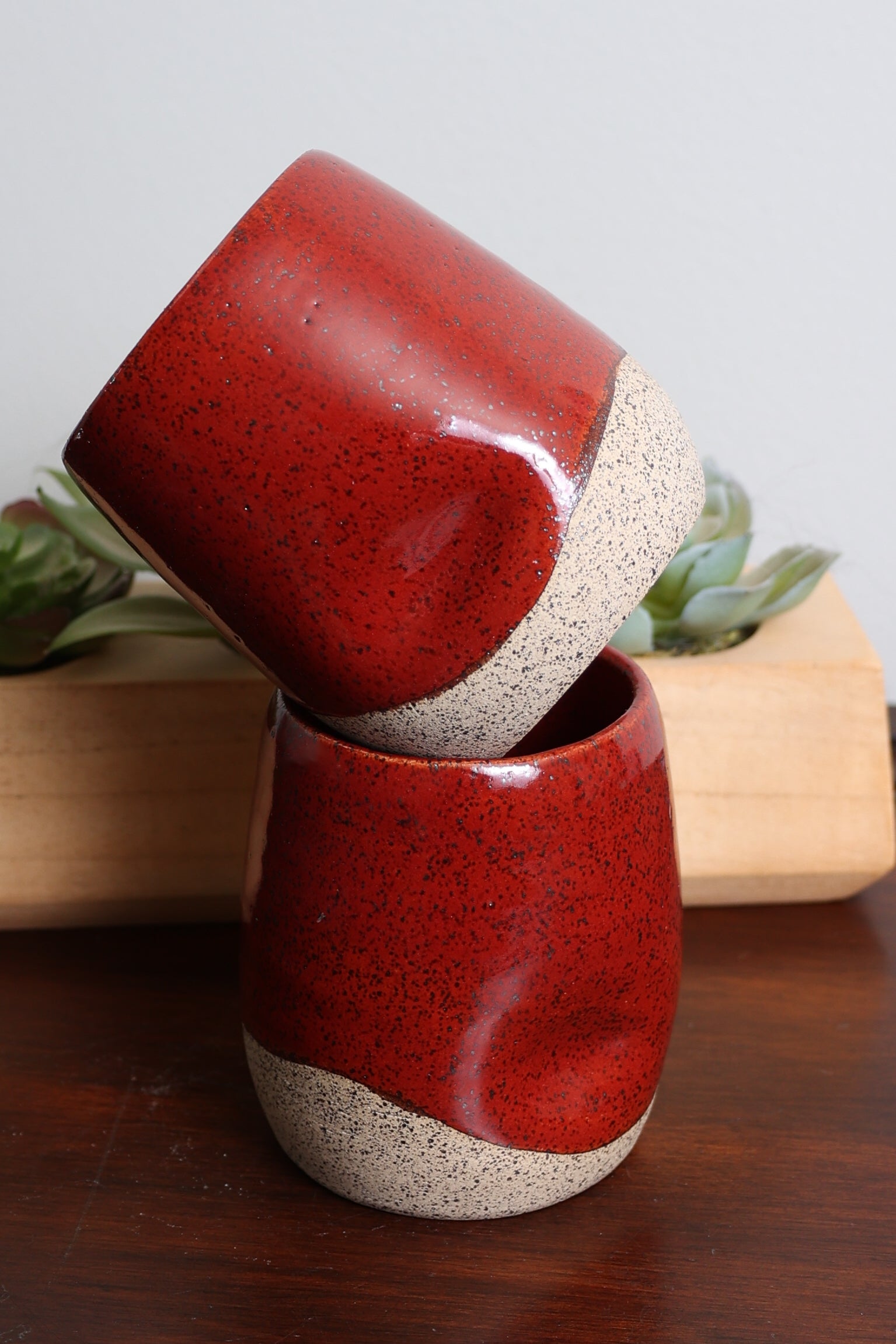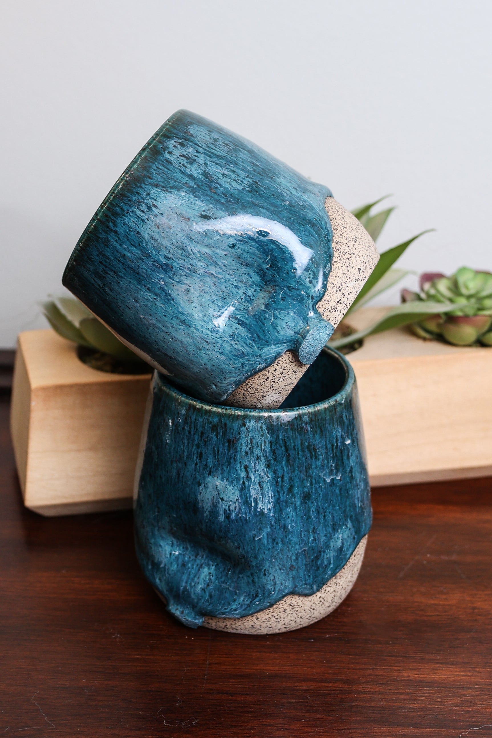 Experience the beauty of our Sawdust and Clay Thumbprint Tumblers. Hand thrown and unique, these stoneware pottery tumblers are perfect for keeping your hot beverages hot and cold beverages cold. With a thumbprint design, these tumblers add a touch of elegance to your drinking experience.