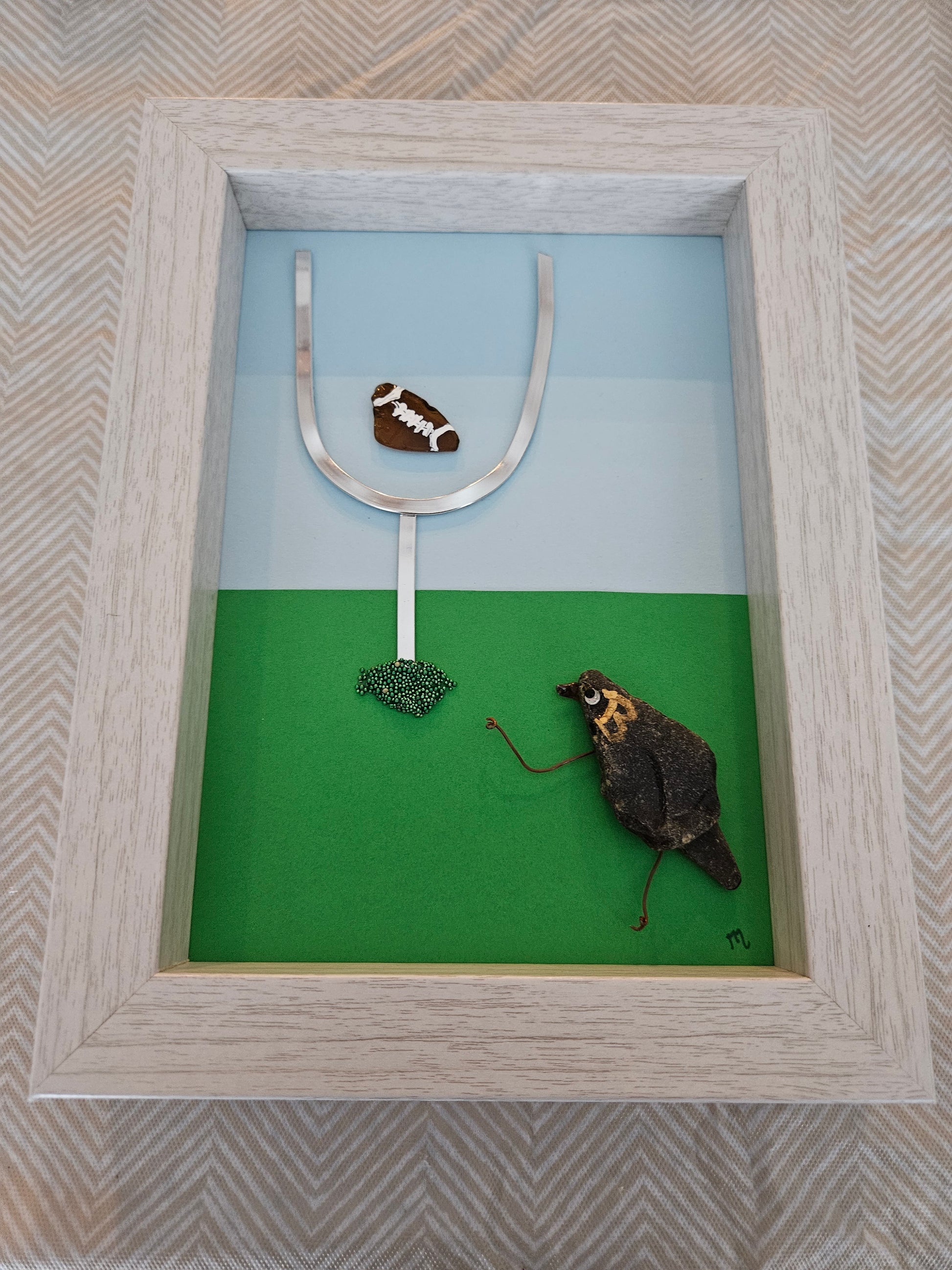 Sea glass Raven in 6" x 8" whitish shadowbox frame