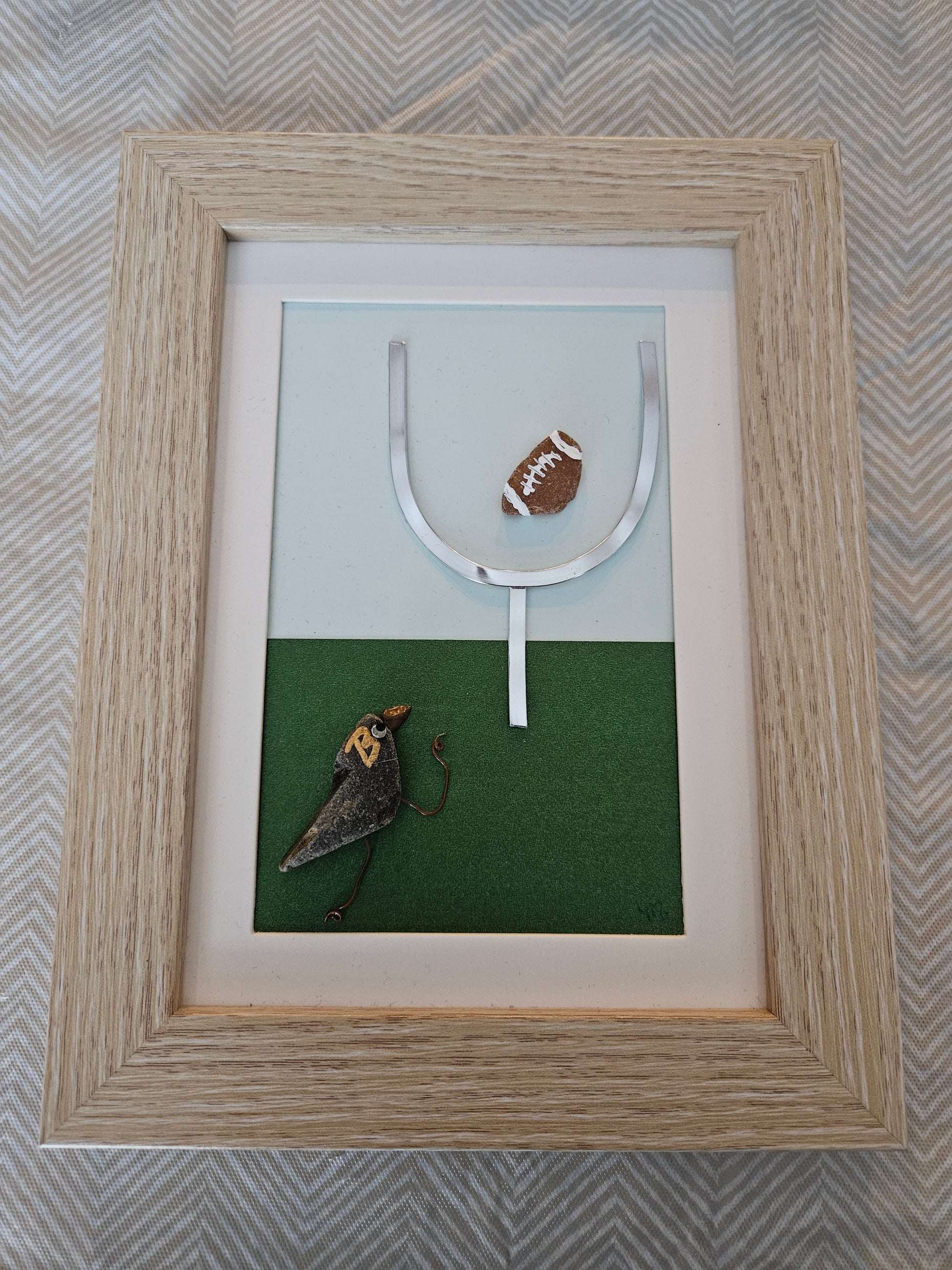 Sea glass Raven in 6.5" x 8.5" beige frame