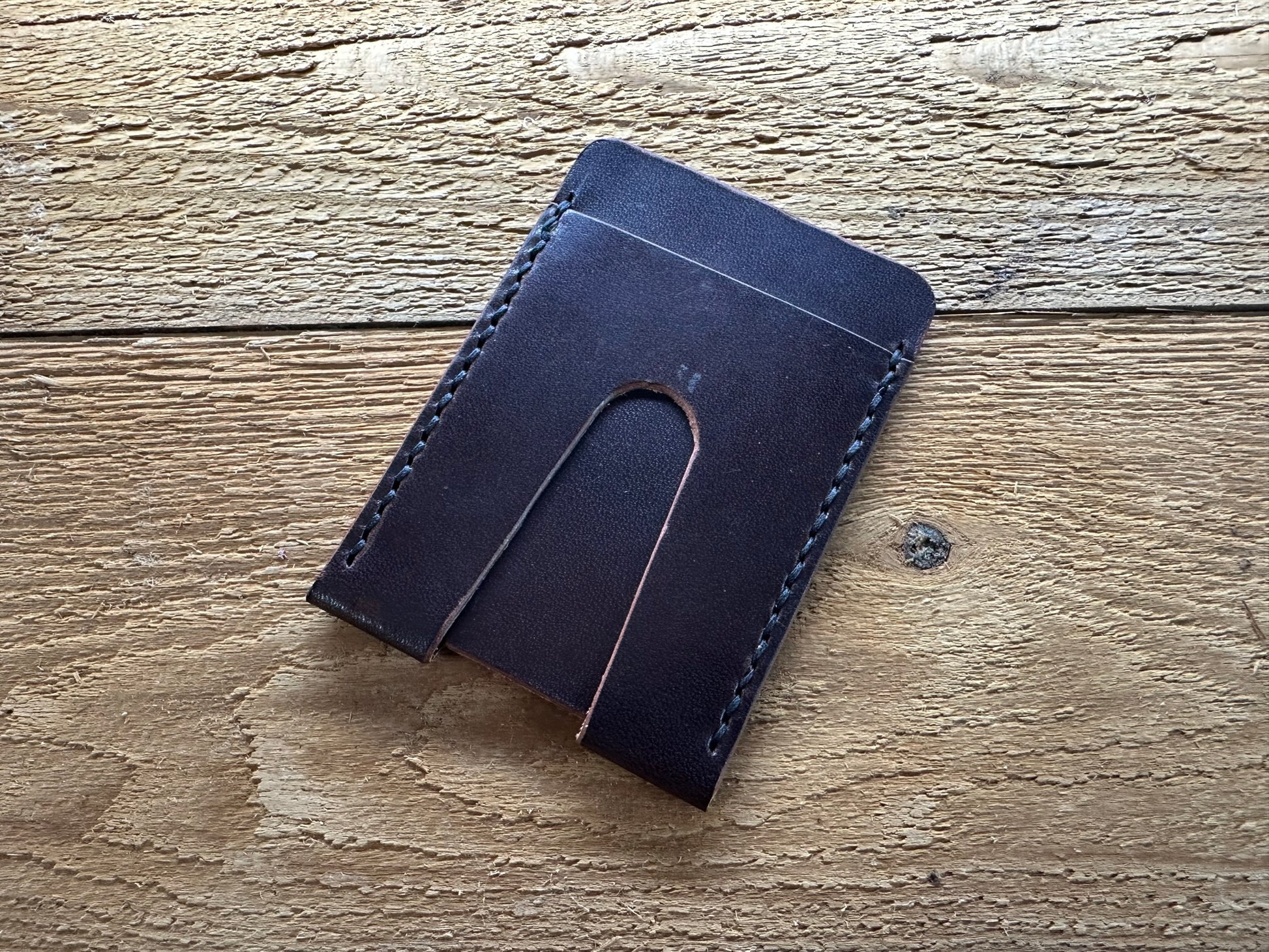 3 pocket wallet with 2 pockets that have cutouts to slide out cards