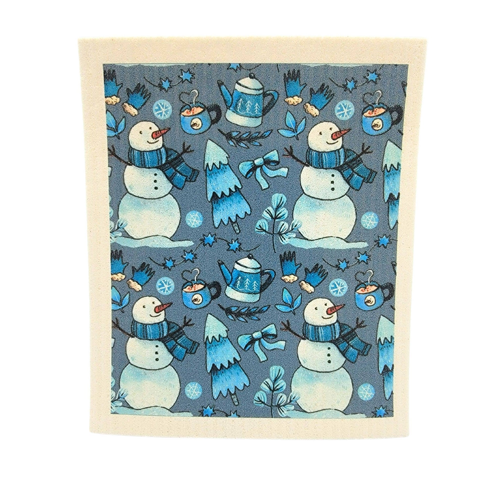 Snowman & Hot Chocolate Swedish Dishcloth - Christmas Decor