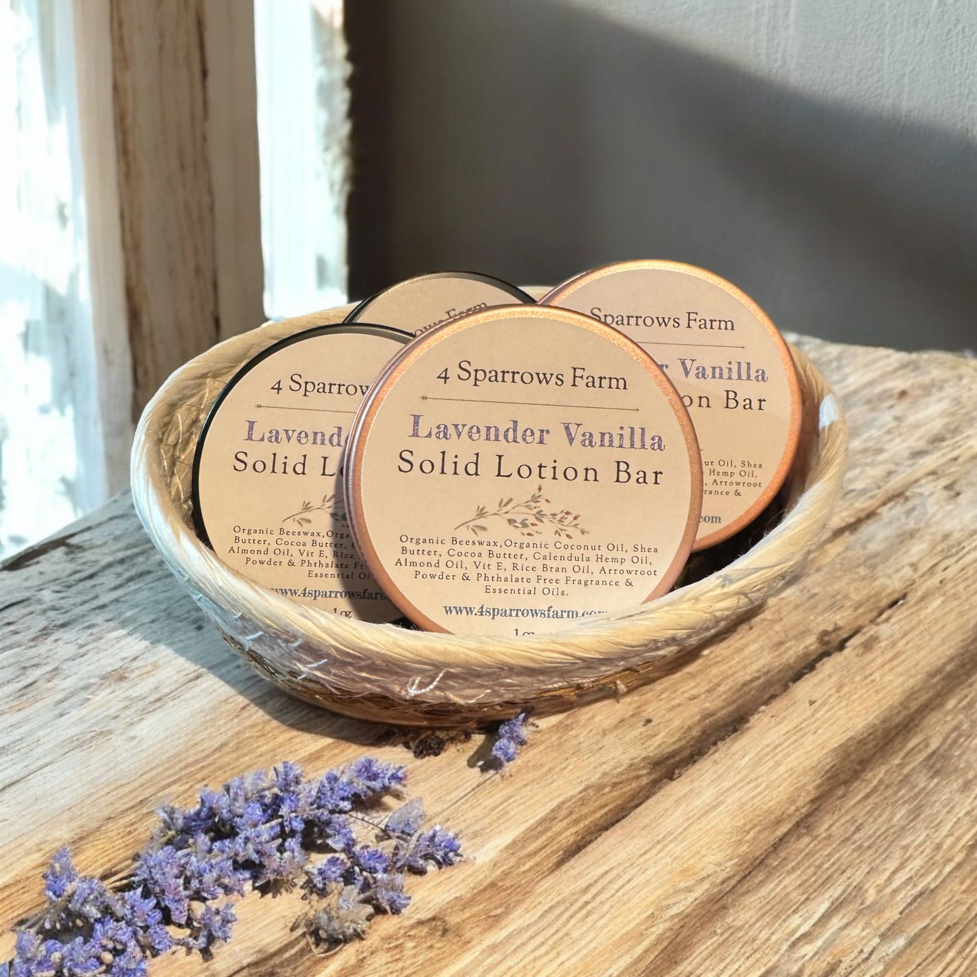 Each bar comes in a reusable Tin~ Simply hold the hard lotion bar in your hands to warm it up a bit then rub gently on any dry areas! Great for hard working hands, helps seal in hydration to nourish your skin. Easy to carry in a purse, pocket or bag! Organic Beeswax has Anti-inflammatory and anti-viral properties, aids in cell reconstruction, softening and rehydrating and helps to lock in moisture.