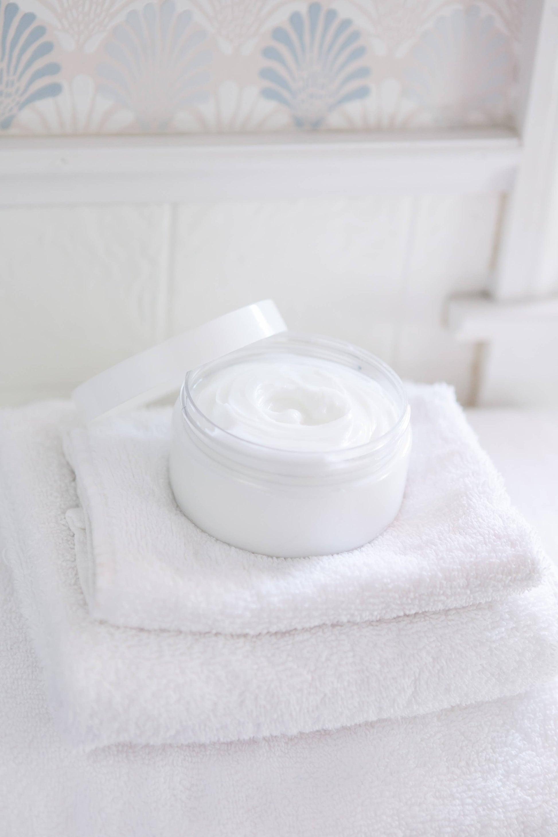 This 8oz body butter jar is perfect for bathrooms and bedside tables! Also available in an 2oz travel size.