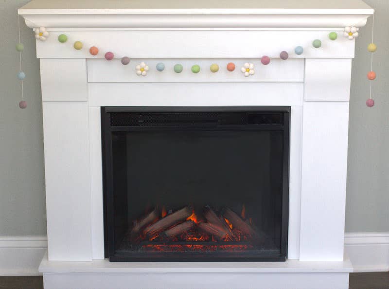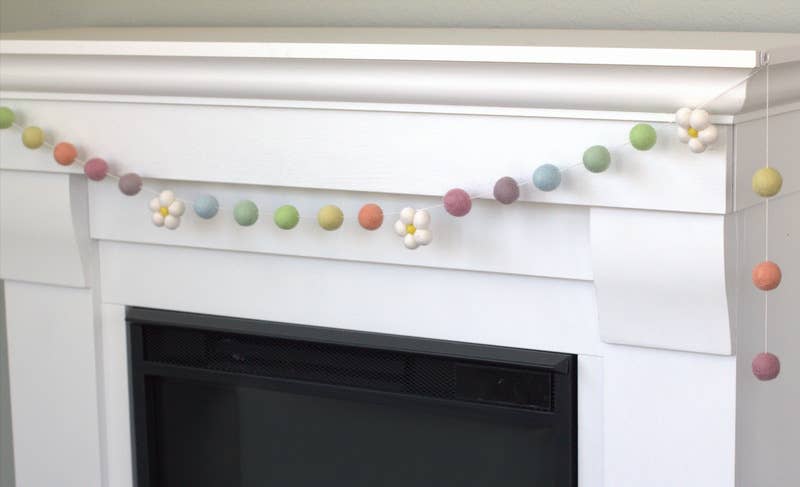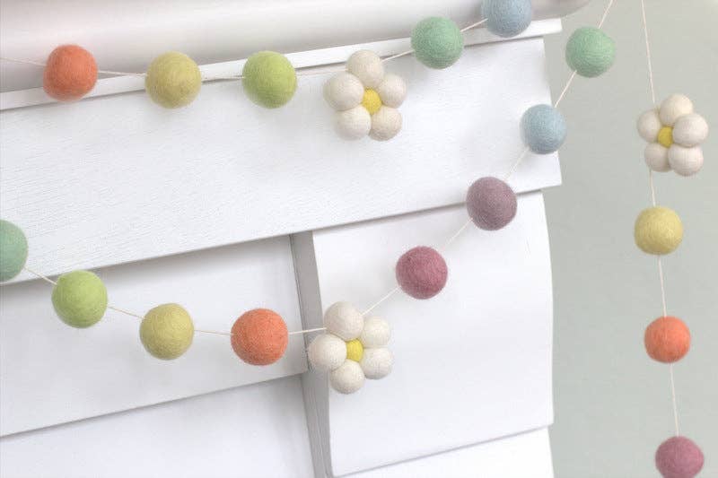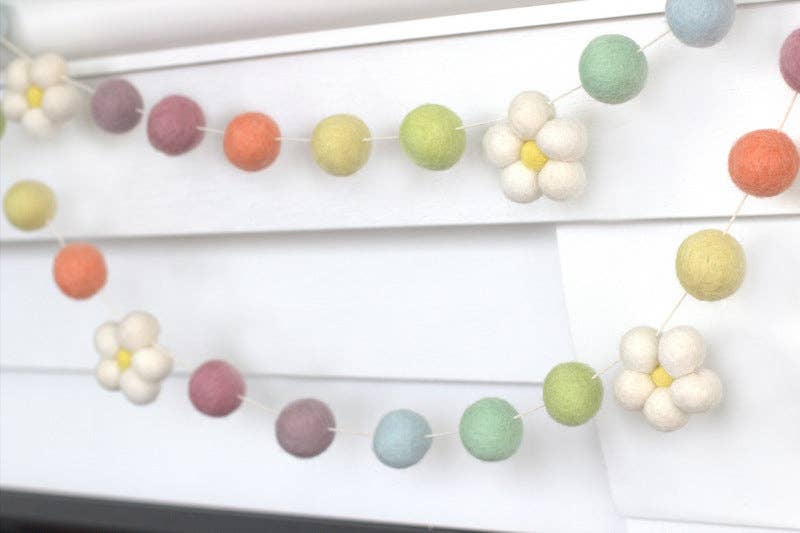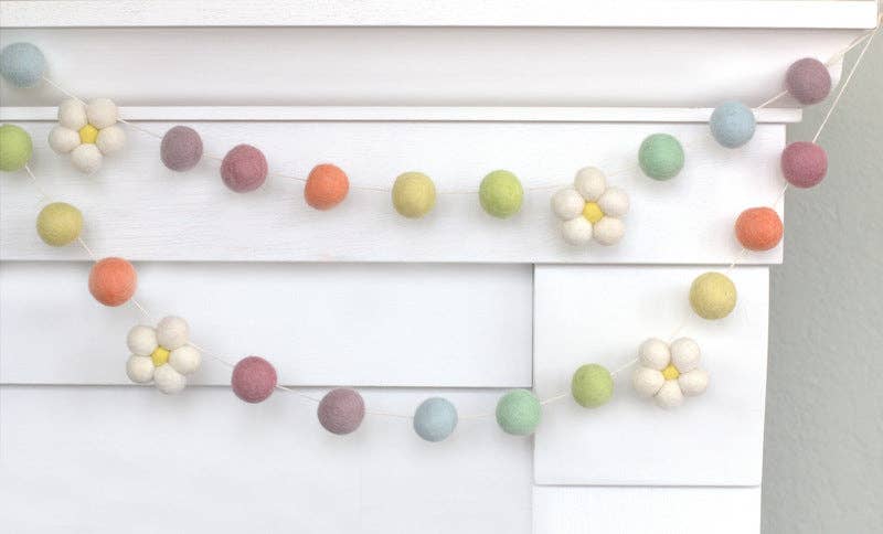 Spring Easter Garland- Daisies & Pastel Color Felt Bals
