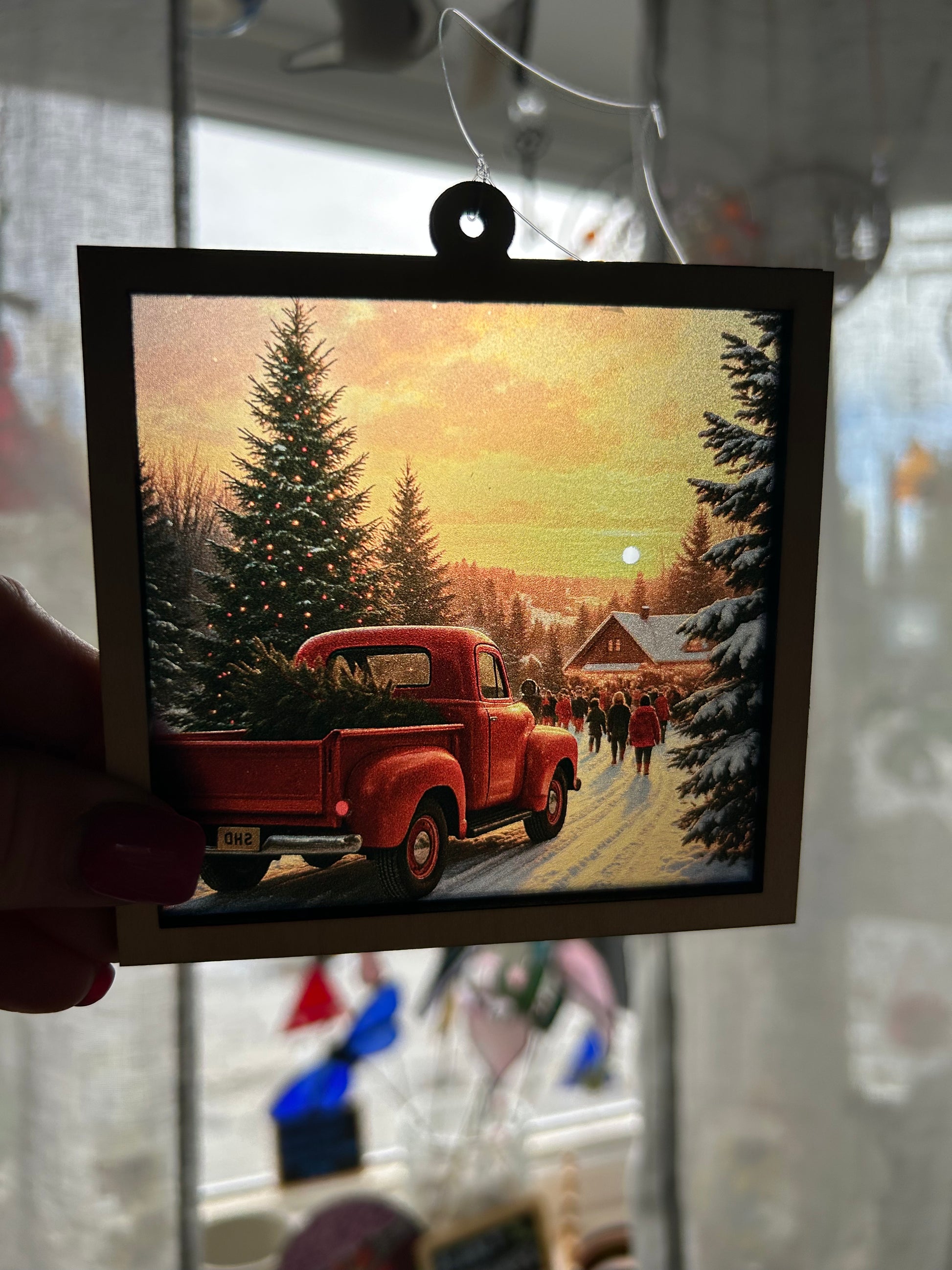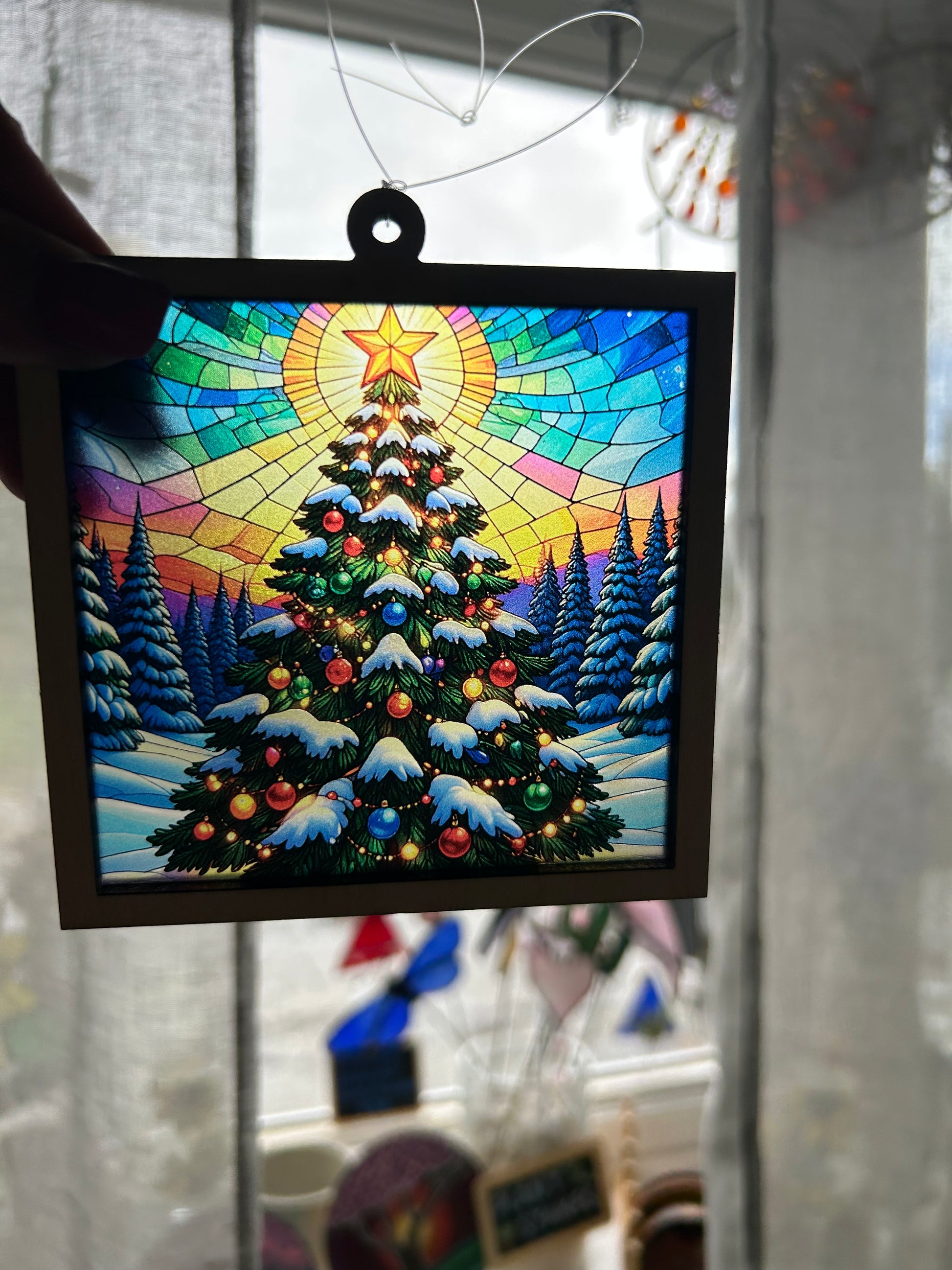 These framed suncatchers are light enough to hang on windows or door. Made from wood and acrylic flex. Comes in 2 sizes