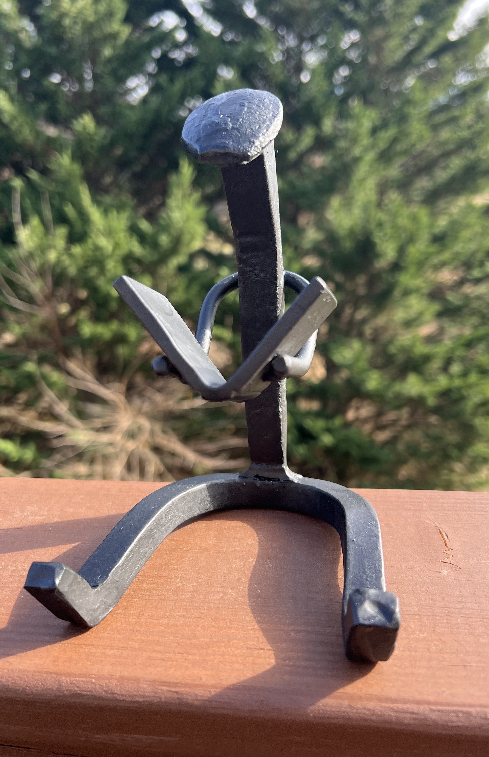 This statue is hand forged using a railroad spike. Can be used as a bookend or a decorative art piece. Perfect for a holiday gift, a housewarming, or to use in your own home!