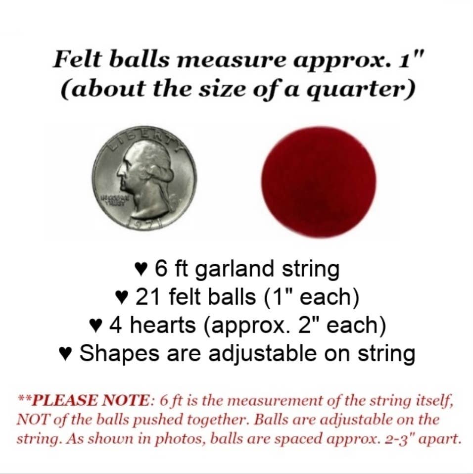 ♥ Felt balls measure 1". Hearts measure approx. 1.75".