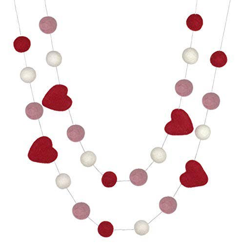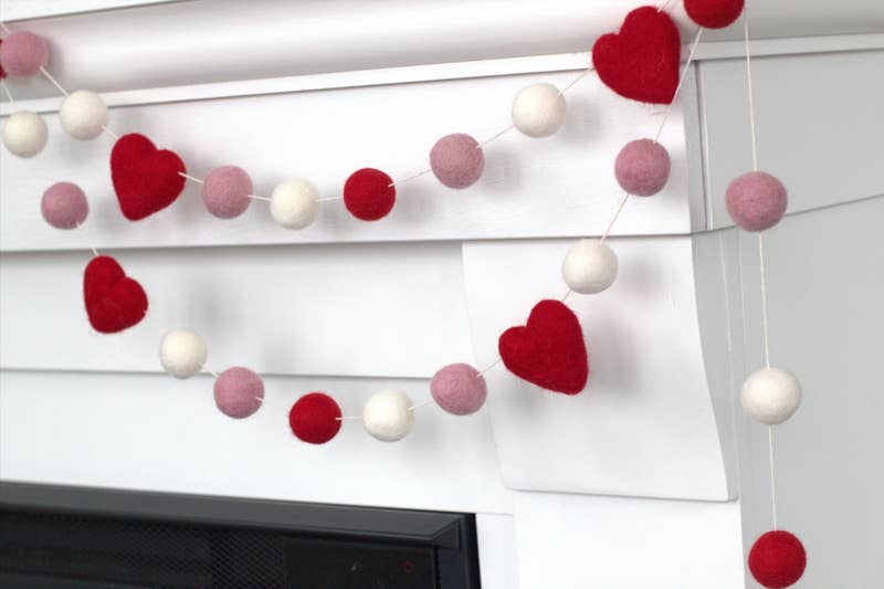 Valentine's Day Garland- Red Pink White- Felt Balls & Hearts
