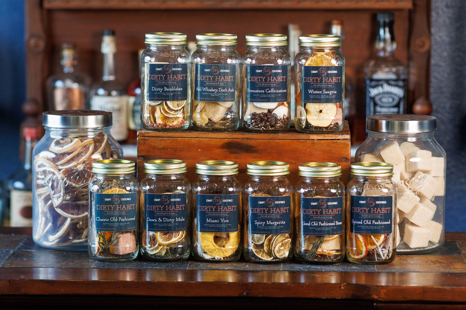 Dirty Habit Infused Craft Cocktail Mix is more than just a cocktail mix, it's an experience. All of our infusions are made with the freshest (locally sourced) fruit, herbs and botanicals. Fill the jar with your favorite spirits and enjoy a fun infusion! Dirty Habit Cocktail Mix is about taking a break to enjoy life (and smooth craft cocktails) on the porch, by the fire or on the couch because you've earned it. For drink ideas and recipes visit the recipe page and follow us on Facebook or Instagram to see fun drink mixes! DIRTY HABIT...Keep it crafty, classy and a little boozy!