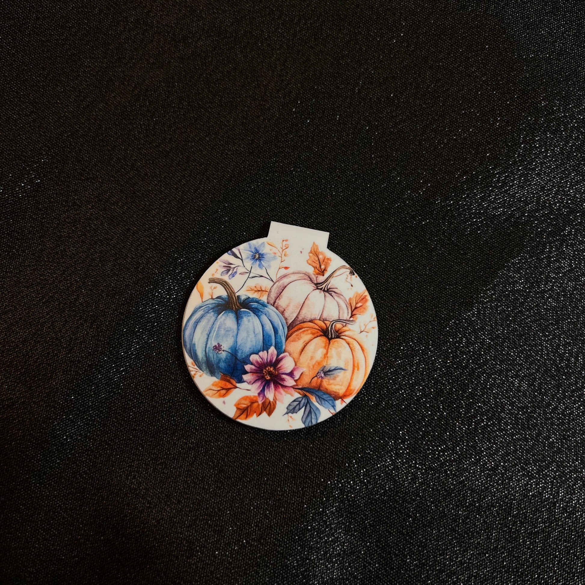Capture the cozy magic of fall with this stunning watercolor pumpkin magnetic bookmark! Featuring a charming trio of pumpkins soft shades of teal, cream and warm orange, accented by delicate autumn florals, this bookmark is both functional and beautiful.