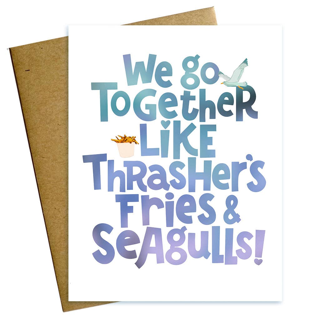We Go Together Like Thrasher's Fries and Seagulls Love Valentine Card