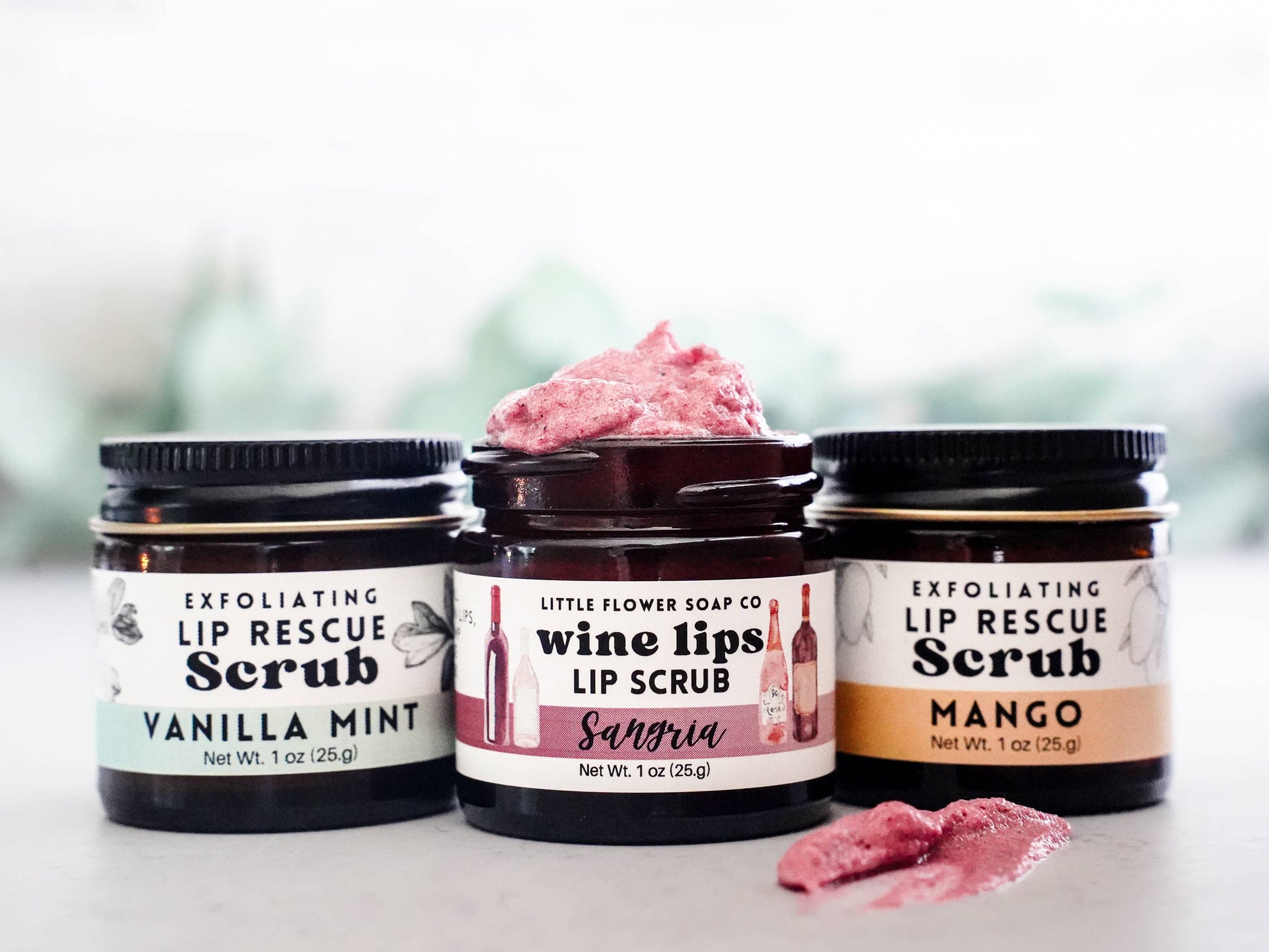 Each 1oz jar of great smelling sugar scrub will exfoliate and moisturize lips in under 1 min.